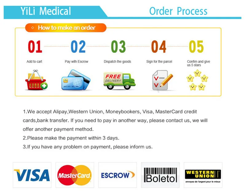 1. Мы являемся качественным поставщиком медицинского оборудования с более чем 6-летним опытом в разработке и производстве высококачественного медицинского оборудования. 2. У нас есть сильная и профессиональная R & D команда, чтобы предоставить клиентам наиболее конкурентоспособные и высококачественные медицинские продукты. 3. Прямые продажи с фабрики, у нас есть ценовое преимущество, чтобы вы могли купить продукцию высокого качества и по низкой цене. 4. У нас отличная сервисная команда, которая обеспечивает лучший сервис в транспортировке, распределении и т. д., что может более эффективно контролировать количество и время доставки, чтобы вы могли получить товар как можно скорее. 5. Наша продукция соответствует сертификатам ЕС CE и ISO13485.