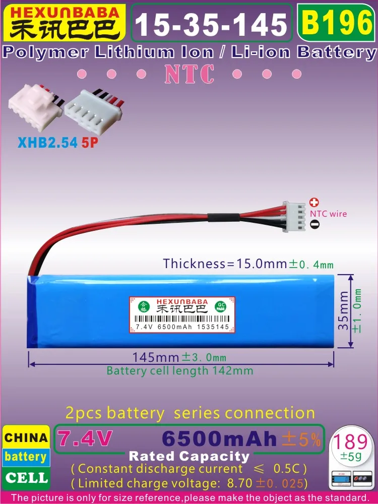 ![[B196] 7 4 В 6500 мАч [1535145] XHB2.54/5PNTC5 проводов Полимерный литий-ионный аккумулятор для](https://ae04.alicdn.com/kf/H018f19fe36e14caa85ceb46b8c84a90cL/B196-7-4-6500-1535145-XHB2-54-5P-NTC-5.jpg)