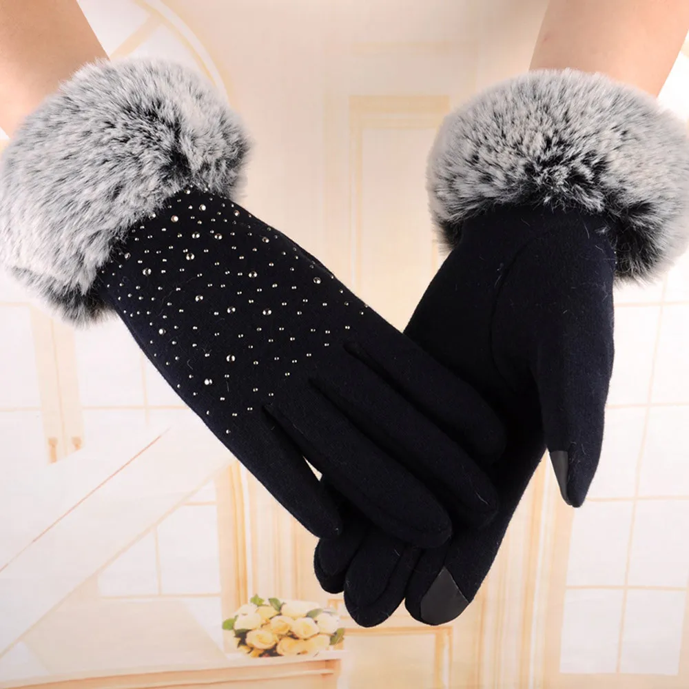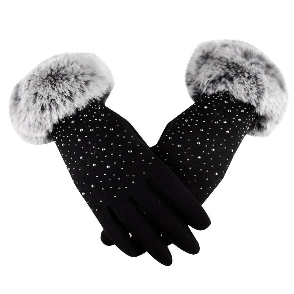 Женские модные зимние теплые перчатки со стразами для защиты от ветра