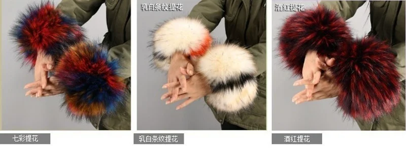 Материал: полиэфирное волокно (искусственный енот; Лиса; Кроличья шерсть Рекс; Меховая манжета)