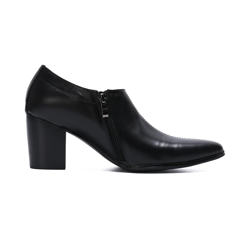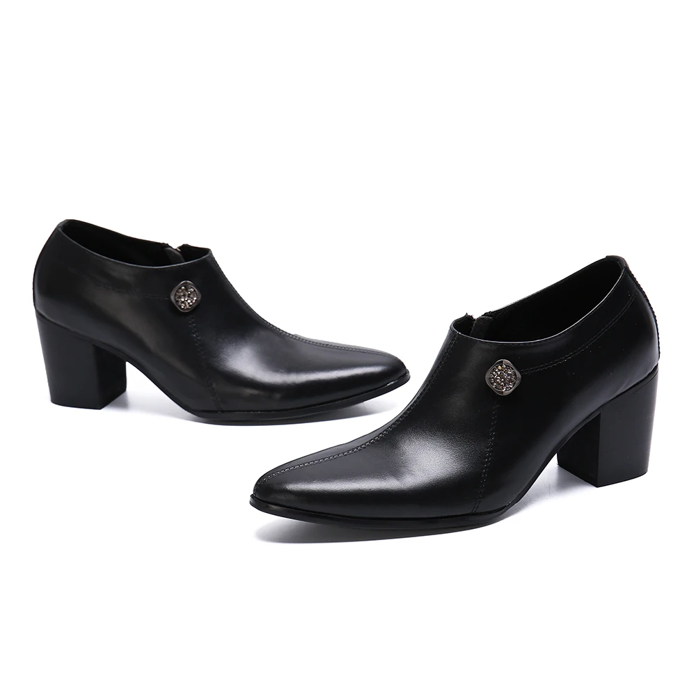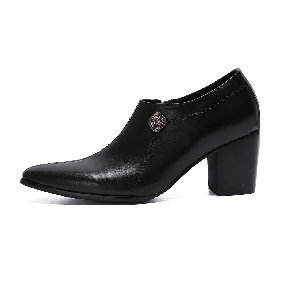 Мужская деловая обувь на молнии Christia Bella, черные вечерние туфли из натуральной кожи с острым носком, на высоком каблуке, большие размеры, 2019