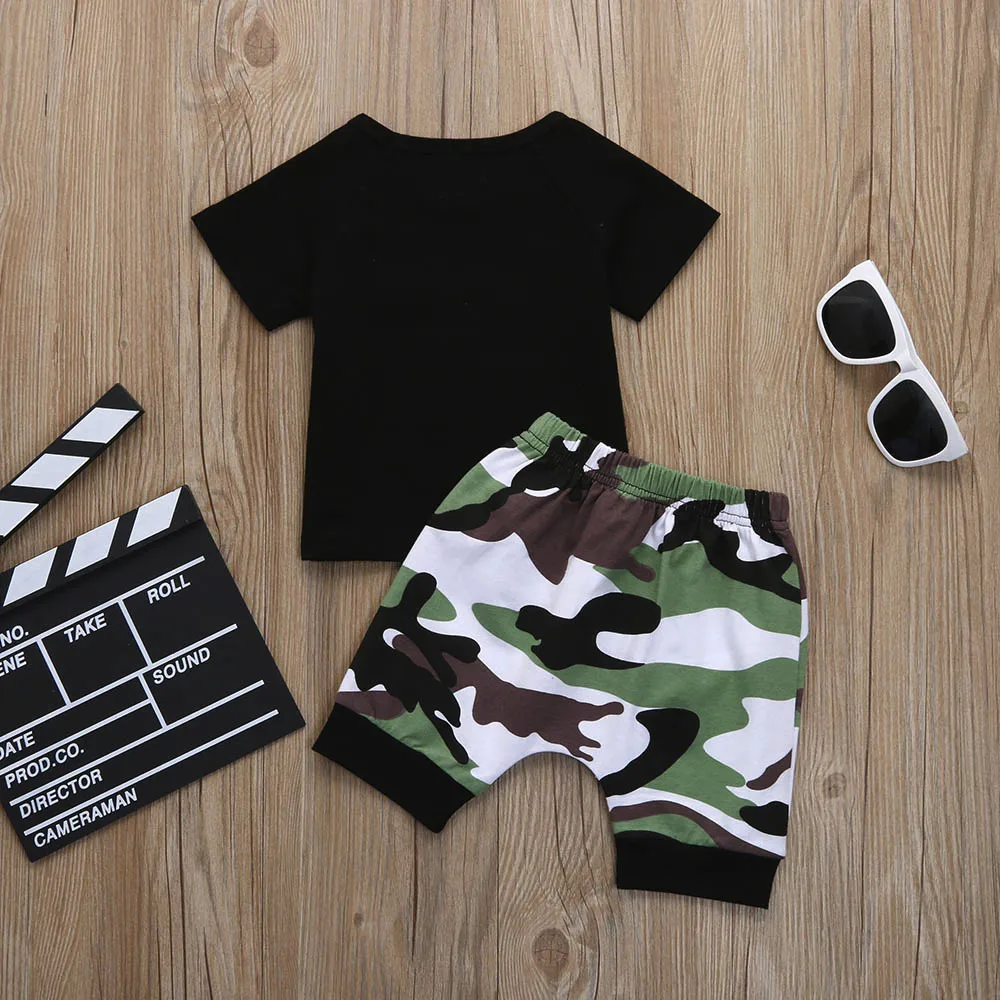 4. Новые милые топы с надписями для мальчиков + камуфляжные шорты, комплект одежды, модный И подходит для вашего маленького ребенка
