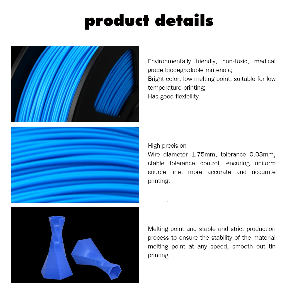 Экологичная нить PCL, низкая усадка, низкая температура плавления, яркий цветной материал.