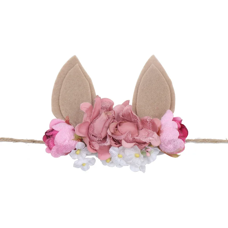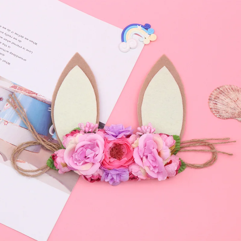 Детский цветочный венок ободок для девочек с рисунком «кроличьи уши» пеньковая веревка Повязки На Голову Повязка для новорожденного Haarband Дети кроличьи уши Головные уборы