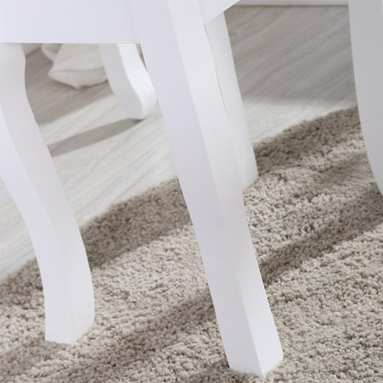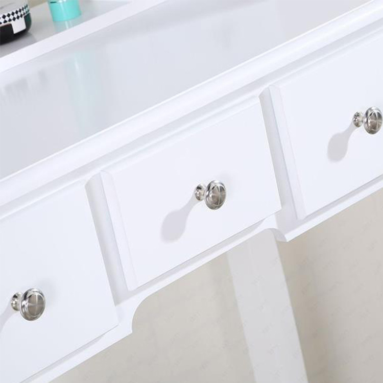 Этот красивый туалетный столик с набором табуретов обязательно произведет большое впечатление на вашу спальню. Этот туалетный столик имеет 5 ящиков, идеально подходит для хранения макияжа, кистей и украшений. Этот туалетный столик оснащен овальным зеркалом, которое вращается на 360 градусов, потрясающей белой отделкой, великолепными пышными ножками и поставляется с мягким табуретом.