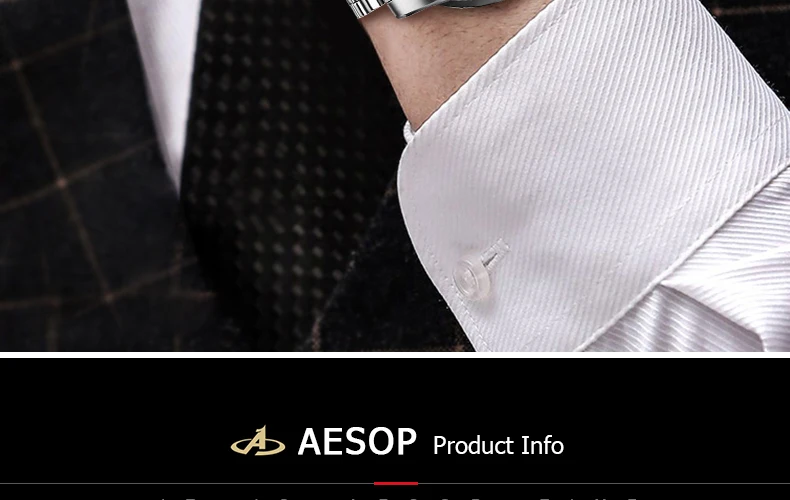 -Мы используем философию международного модного дизайна, ориентируясь на производственный процесс, тщательно и долговечно. Предоставляем клиентам элегантные и доступные часы. -Новейшие передовые технологии создают нашу высокоточную работу. -Ударопрочная и водонепроницаемая технология для продления срока службы часов. -Ежедневная водонепроницаемость 50 м -Прочный материал, гарантия 3 года. -Магазины фабрики, конкурентоспособная цена. Спецификация -Наименование бренда: AESOP -Особенности: водостойкость/ударопрочность -Механизм: высокоточная полировка с автоподзаводом и высокой точностью -Чехол Материал: нержавеющая сталь -Длина ремешка часов: 23 см -Диаметр циферблата: 41 мм -Толщина циферблата: 12 см -Ширина ремешка: 20 мм Посылка: 1. Коробка; 2. Руководство пользователя; 3. Гарантийный талон; 4. Оригинальный продукт.