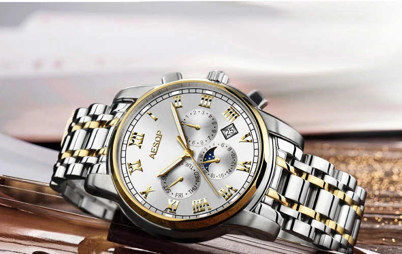 В: почему нужно вручную отрегулировать дату часов в начале каждого месяца? Поскольку количество дней в каждом месяце не одинаковое, то некоторые 28 дней, примерно 31 день, поэтому необходимо вручную отрегулировать, чтобы убедиться в точности даты. В: почему при корректировке даты у вас более 31 даты? Двойной циферблат, левая сторона дизайна 0-3, правая сторона дизайна 0-9, поэтому он покажет 00 и 32-39, этот двойной циферблат отображения даты является нормальным способом. Не проблема часов, которая определяется механической структурой. В: водонепроницаемые ли часы? Водонепроницаемость; Можно мыть руки, но не плавать и избегать контакта часов с паром и горячей водой, например, не носите горячую ванну и так далее. В: Имеется ли гарантия на часы? Механизм имеет годовую гарантию (только в Китае). Часы наручные AESOP Мужские автоматические, брендовые модные механические водонепроницаемые из нержавеющей стали, 27
