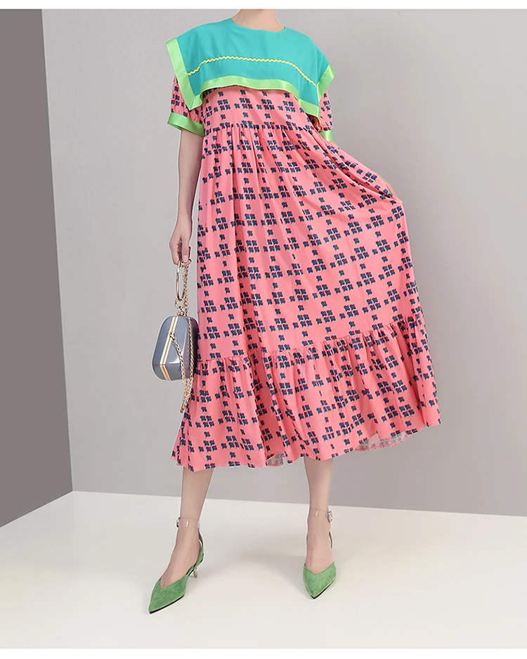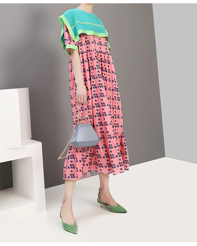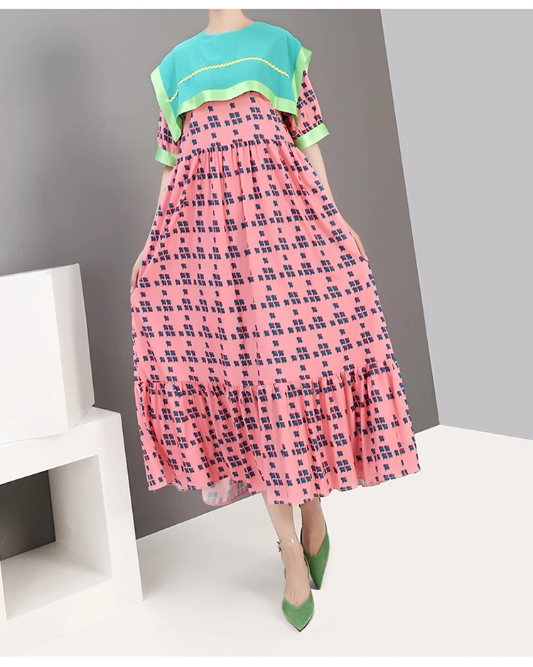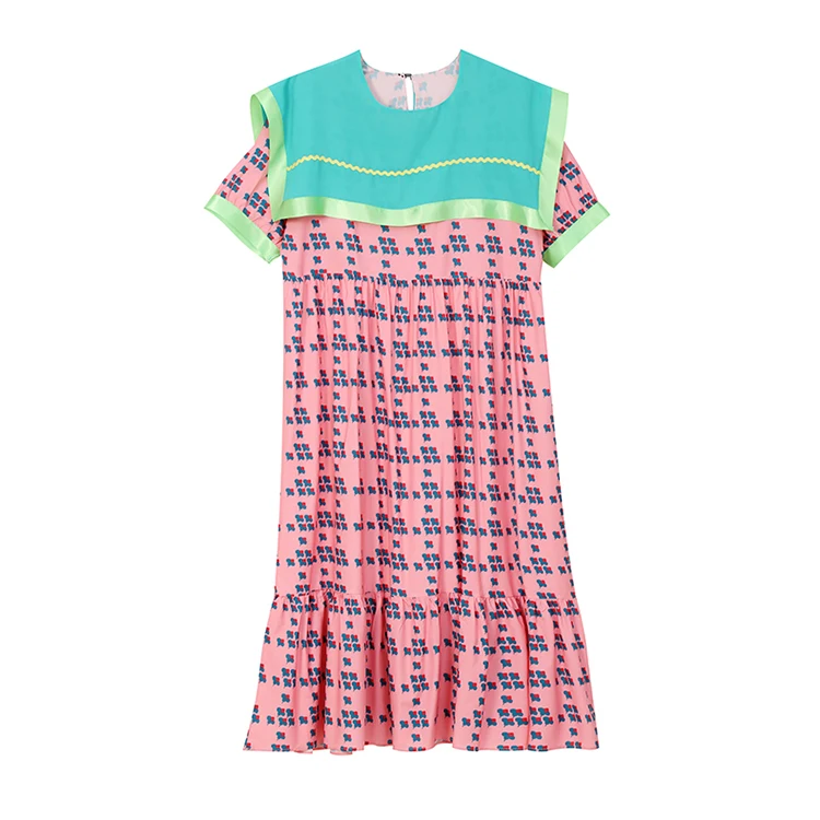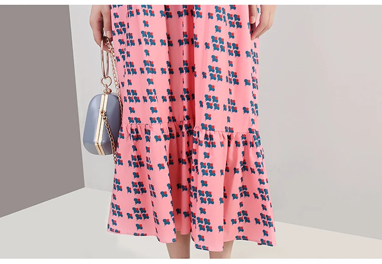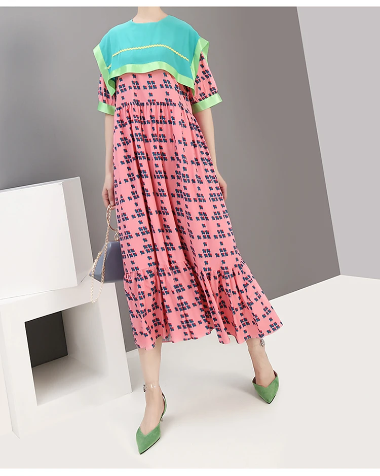 Новинка 2019, корейский стиль, женское летнее платье трапециевидной формы, длинное розовое платье с геометрическим рисунком, женское платье Kawaii, Пастельное платье, халат, стиль 5308