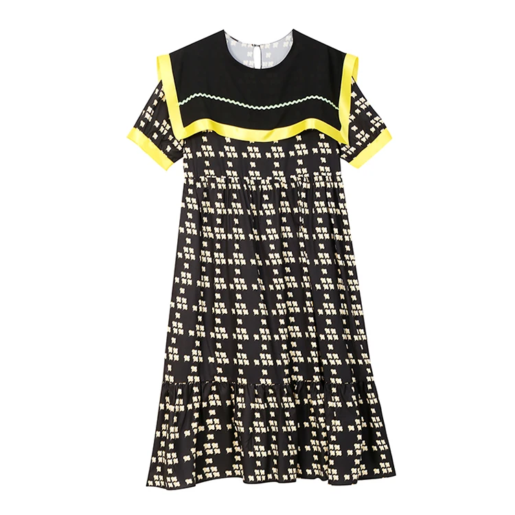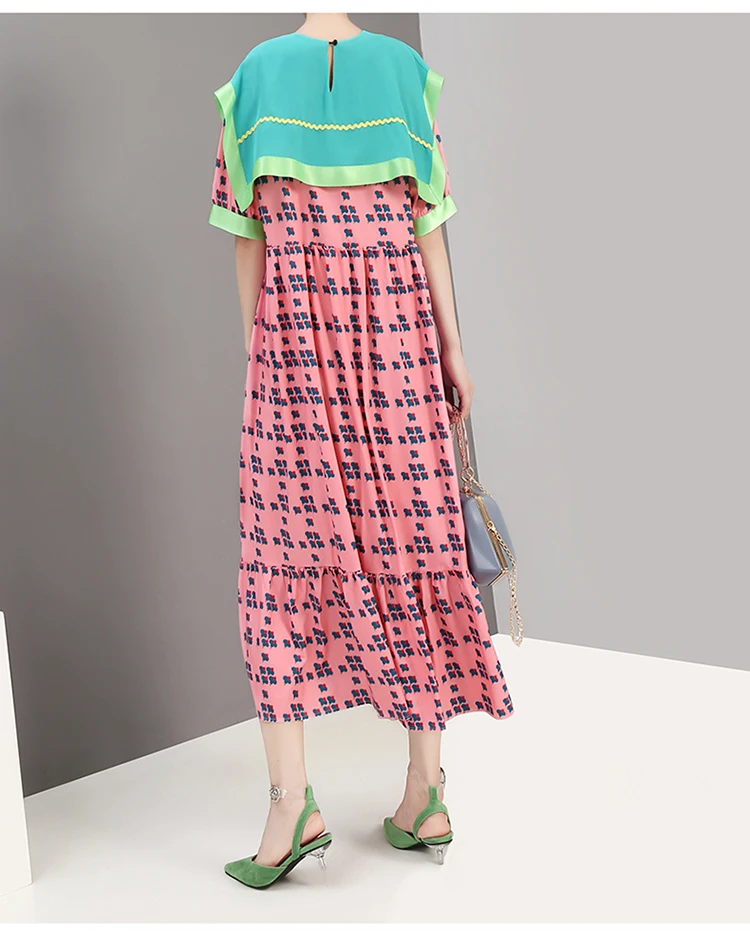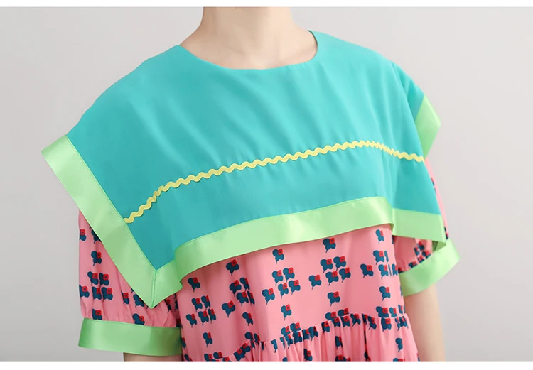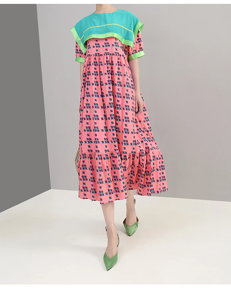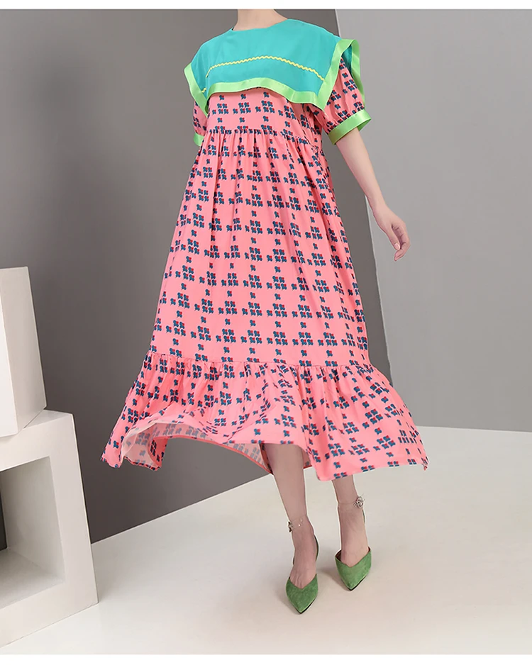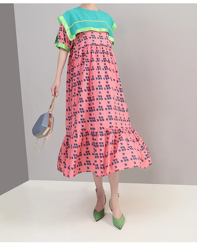 Новинка 2019, корейский стиль, женское летнее платье трапециевидной формы, длинное розовое платье с геометрическим рисунком, женское платье Kawaii, Пастельное платье, халат, стиль 5308
