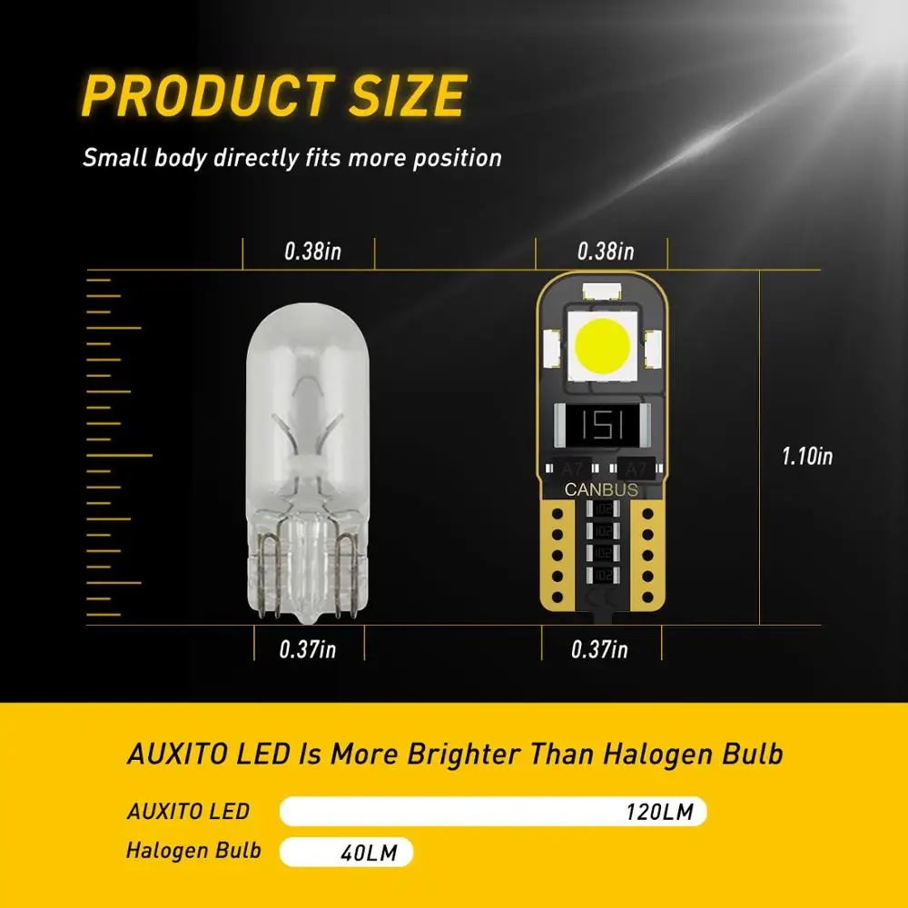 AUXITO, 2 шт., без ошибок, светодиодный W5W T10 194 168 2825, Canbus, светодиодный автомобильный парковочный светильник, автомобильная Клинообразная лампа, яркий, 6000 К, белый, лампа для лицензии, 12 В, интерьерная лампа