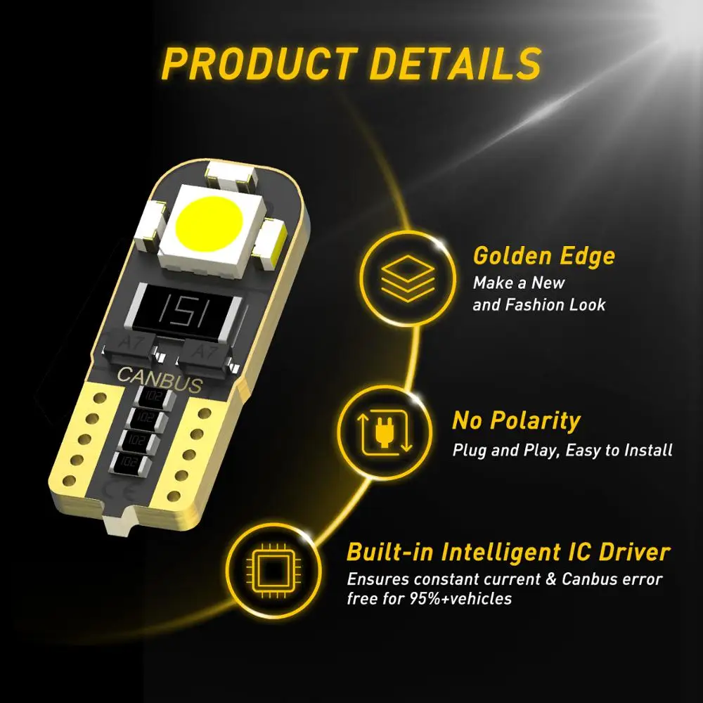 100% новый и высокое качество Быстрое включение/выключение времени отклика Длительный срок службы, низкое энергопотребление, энергосбережение Простая установка, прямая замена, проводка не требуется Применение: Автомобильный купольный светильник, светильник карты, бардачок светильник, светильник для чтения, парковочный светильник, светильник багажника, дверной светильник, светильник номерного знака, парковочный светильник, светильник шириной, зазорный светильник, боковой светильник, И так далее