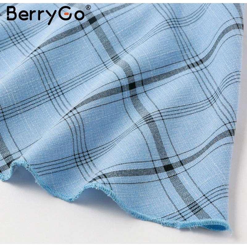 BerryGo Vintage puff sleeve plaid dress women Elegant square collar female mini dress Sexy ruffled office ladies autumn vestidos