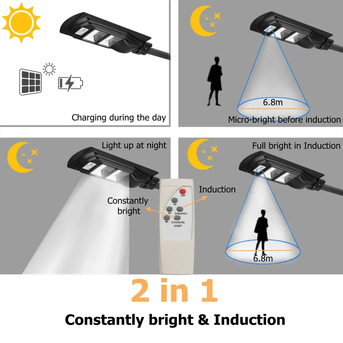 Особенности: -50/100/150 светодиодный s высокой яркости 3030 светодиодный точечные лампы энергосбережения, даже светильник, продлевающие удовольствие. -Поликристаллическая солнечная панель преобразует солнечную энергию в электричество, более экологически чистый. -ABS цельный корпус, высокая твердость, герметичный и водонепроницаемый -Простая установка, без технического обслуживания надежная работа без необходимости подключения или траншеи. Водонепроницаемый алюминиевый сверхпрочный корпус. -Пожалуйста, включите переключатель перед установкой или зарядкой. -Применение: наружная стена или столб на площади, парке, саду, во дворе, улице, дорожке, пути, кампусе, ферме, периметре безопасности и т. Д. Характеристики: Материал корпуса: АБС-пластик + Поликарбонат Источник света: светодиодный светильник высокой яркости 3030 (ярче, более устойчив к температурам) Цветовая температура: 6500K ~ 7000K (холодный белый) Уровень водонепроницаемости: 97% герметичный эффективный водонепроницаемый (дождь) Система управления: пульт дистанционного управления Светильник Статус: непрерывной яркости Угол срабатывания: 120 градусов Рекомендуемая высота установки: 3-5 м Степень водонепроницаемости: IP65 Площадь облучения: 80/120 квадратных метров Напряжение: 6 В Батарея Емкость: 3,2 V/6000 ~ 12000 мА-ч Система управления: светильник + радар-датчик интеллектуального распознавания + пульт дистанционного управления (Система управления: светильник + пульт дистанционного управления + индукция радара (когда вы выбираете время 2/3/4 часов, 2/3/4 часовой светильник будет в постоянном светильник 100%) Солнечная панель: 6V поликристаллическая солнечная панель Время солнечного света: около 10 ч Источник питания: Встроенный литий-железо фосфатный аккумулятор Продукт: Мощность: 60 Вт Светодиодный Кол-во: 50*3030 светодиодный Батарея Capcity: 6AH литий-железо фосфат батарея Время освещения полной зарядки: 13 часов Режим: непрерывный Яркий + пульт дистанционного управления Светильник Цвет: белый Цвет корпуса: черный Материал: АБС-пластик Площадь облучения: 80 квадратных метров Размер корпуса лампы: 395x210x6 0 мм/15,6 "x 8,3" x 2,4" Размер панели солнечных батарей: 301x18 7 мм/11,9 "x 7,4" Мощность: 90 Вт Светодиодный Кол-во: 100*3030 светодиодный Батарея Capcity: литий-железо-фосфатная батарея 8AH Время освещения полной зарядки: 13 часов Режим: непрерывный Яркий + пульт дистанционного управления Светильник Цвет: белый Цвет корпуса: черный Материал: АБС-пластик Площадь облучения: 100 квадратных метров Размер корпуса лампы: 495x240x7 0 мм/19,5 "x 9,4" x 2,8" Размер панели солнечных батарей: 396x21 2 мм/15,6 "x 8,3" Мощность: 150 Вт Светодиодный Кол-во: 150*3030 светодиодный Батарея Capcity: 12AH литиевая железная фосфатная батарея Время освещения полной зарядки: 13 часов Режим: непрерывный Яркий + пульт дистанционного управления Светильник Цвет: белый Цвет корпуса: черный Материал: АБС-пластик Площадь облучения: 120 квадратных метров Размер корпуса лампы: 635x260x7 0 мм/25 "x 10,2" x 2,8" Размер панели солнечных батарей: 507x23 0 мм/19,9 "x 9,1" Посылка включает в себя: 1x60/90/150W Солнечный уличный светильник 1 x пульт дистанционного управления (требуется 2 * AAA батареи, но не включены) Дополнительный аксессуар: 50 см монтажный столб |