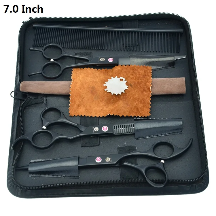 Стальные профессиональные ножницы для домашних животных набор для стрижки домашних животных 7,0 "прямые и изогнутые и истонченные ножницы для стрижки собак гребень сумка LZS0639 |