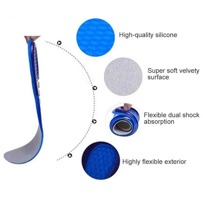 Easily worn with most shoe styles, the versatile gel inserts can be trimmed for a customized fit. The full-length insoles have a textured base to grip the inside of your shoe, eliminating slipping for greater stability and comfort. Also relieving pain and pressure caused by spurs, corns, and neuroma, the massaging gel insoles are perfect for individuals who are on their feet all day
