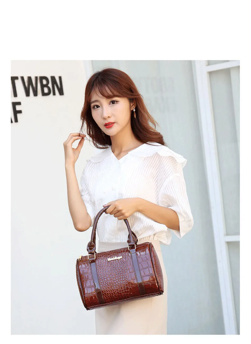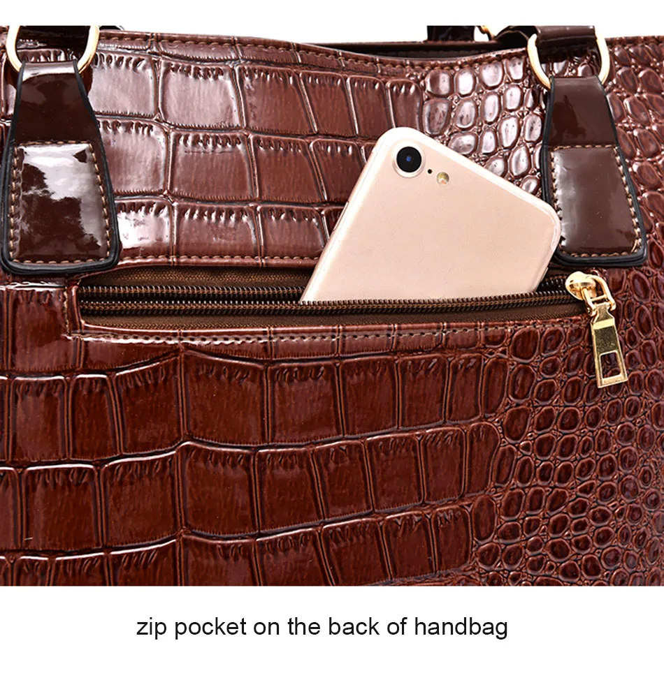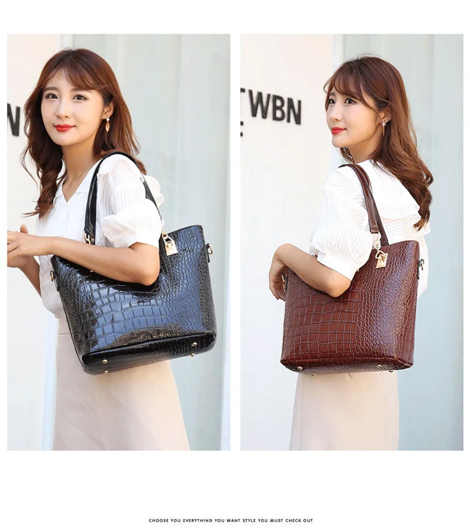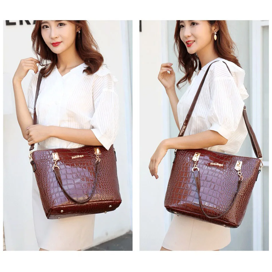 Цвет: черный, красный, винно-красный Материал: из искусственной кожи, лакированная кожа Пол: женщины, женщины, дамы, девушки, Стиль: Модный, роскошный, классический Рисунок: однотонный Подкладка: полиэстер Застежка: молния Сезон: весна, лето, осень, зима Повод: шоппинг, работа, офис, ежедневно, Размер сумки: Сумка: 29x13x28см Маленькая сумочка: 27x14x19cm Сумка через плечо: 28x9x20см Кошелек: 19x10 см Клатч: 15x8 см Сумка для ключей: 5x10 см