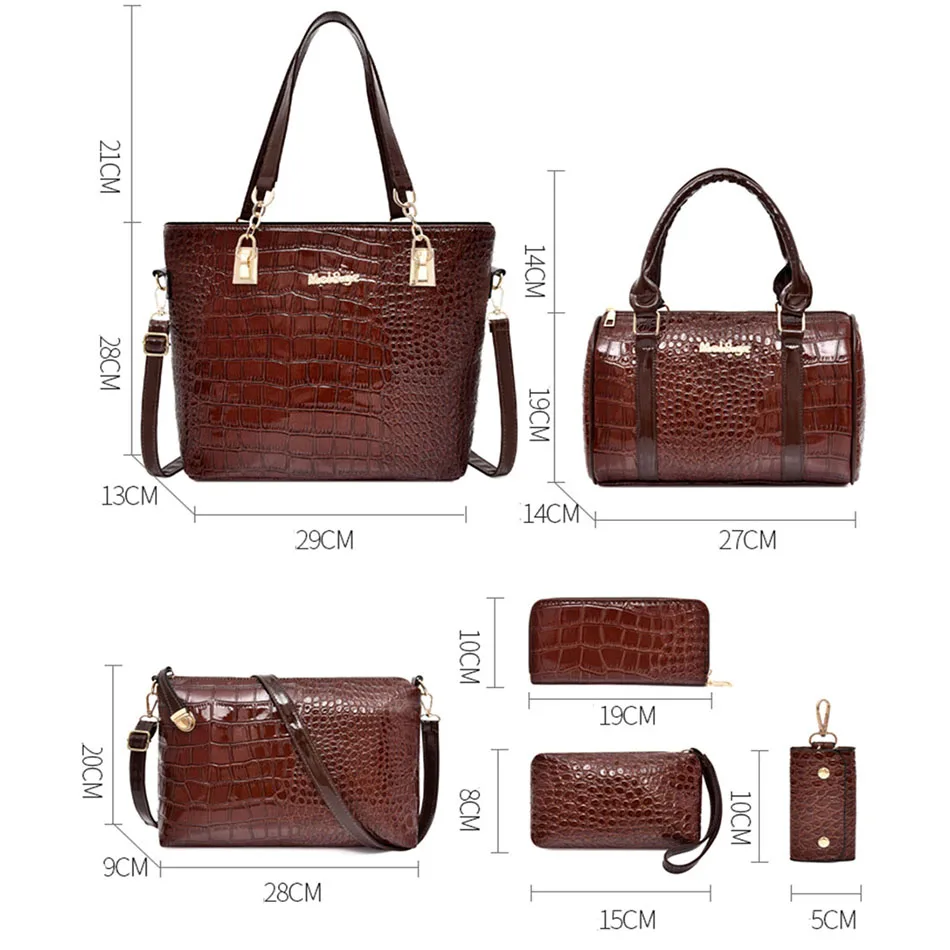 6 шт., сумка в комплекте, кожаные роскошные сумки для женщин, сумка через плечо, сумка-мессенджер, клатч, кошельки и сумки, bolsa feminina