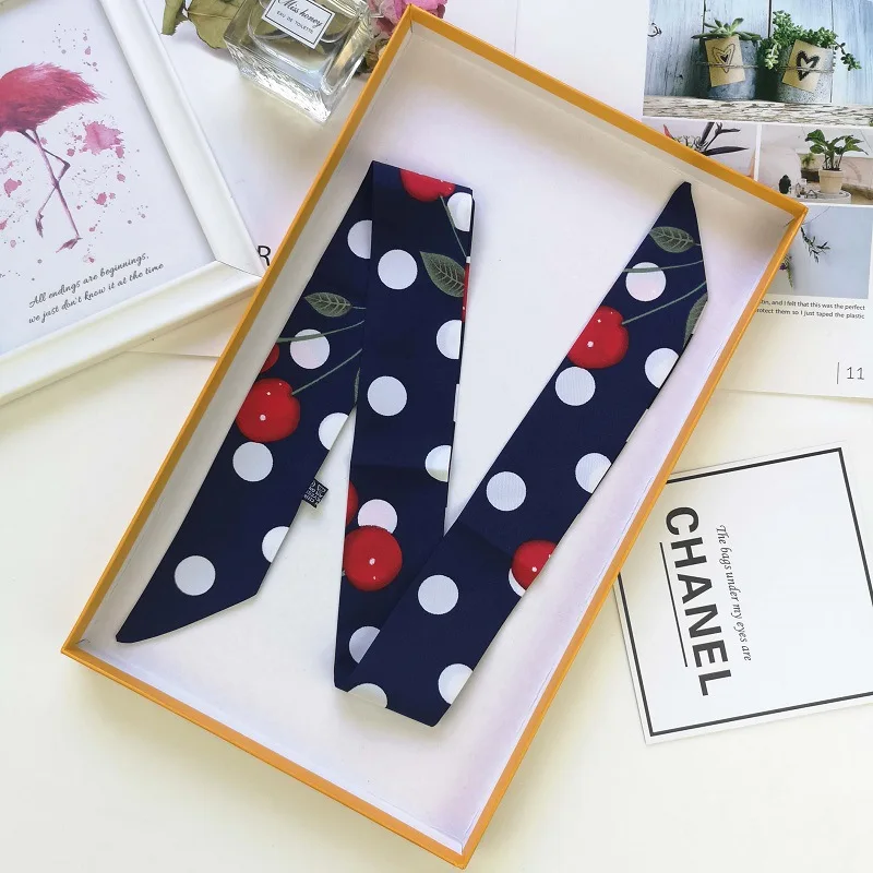 Новый обтягивающий шарф с фруктовым принтом, шелковый шарф для женщин, роскошный брендовый Модный цветочный женский шарф, шарф на голову, шарфы SJ032