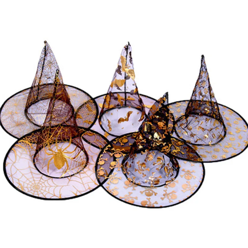 Детская черная накидка, шляпа злой ведьмы, нарядное платье с золотым узором для вечеринки, маскарадный костюм ведьмы на Хэллоуин, нарядное платье на Хэллоуин
