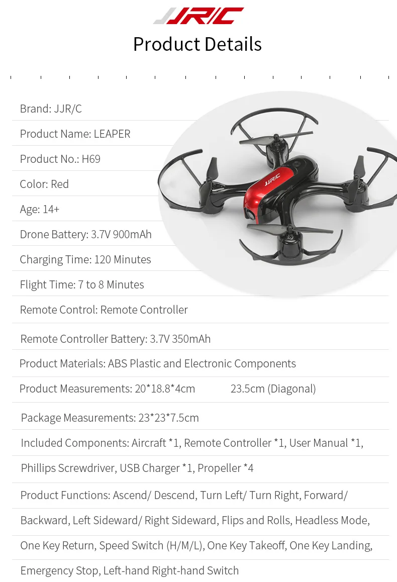 Функции: вперед/назад, режим без головы, автоматический возврат одной кнопкой, посадка одной кнопкой, взлет одной кнопкой, боковой полет, замедление, ускорение, поворот влево/вправо, вверх/вниз