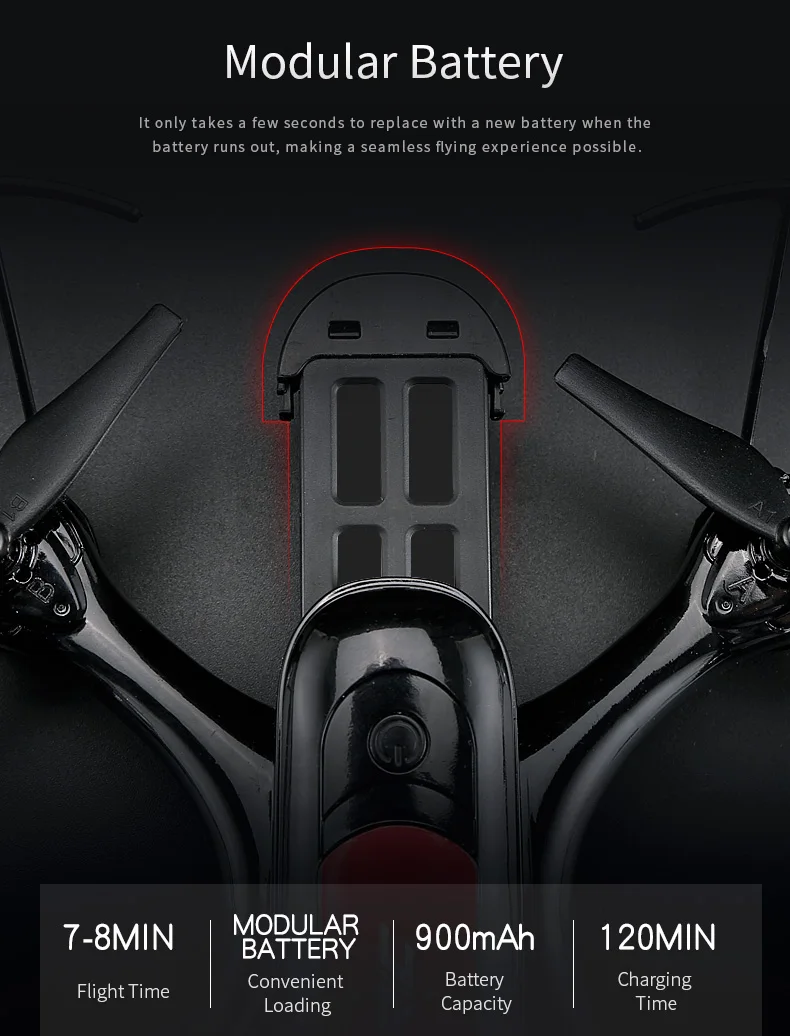 Когда аккумулятор разряжается, для замены на новый аккумулятор требуется всего несколько секунд, что делает процесс бесшовного полета возможным.