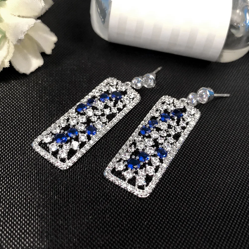 Женские Висячие серьги с синими кристаллами и цветком в винтажном стиле