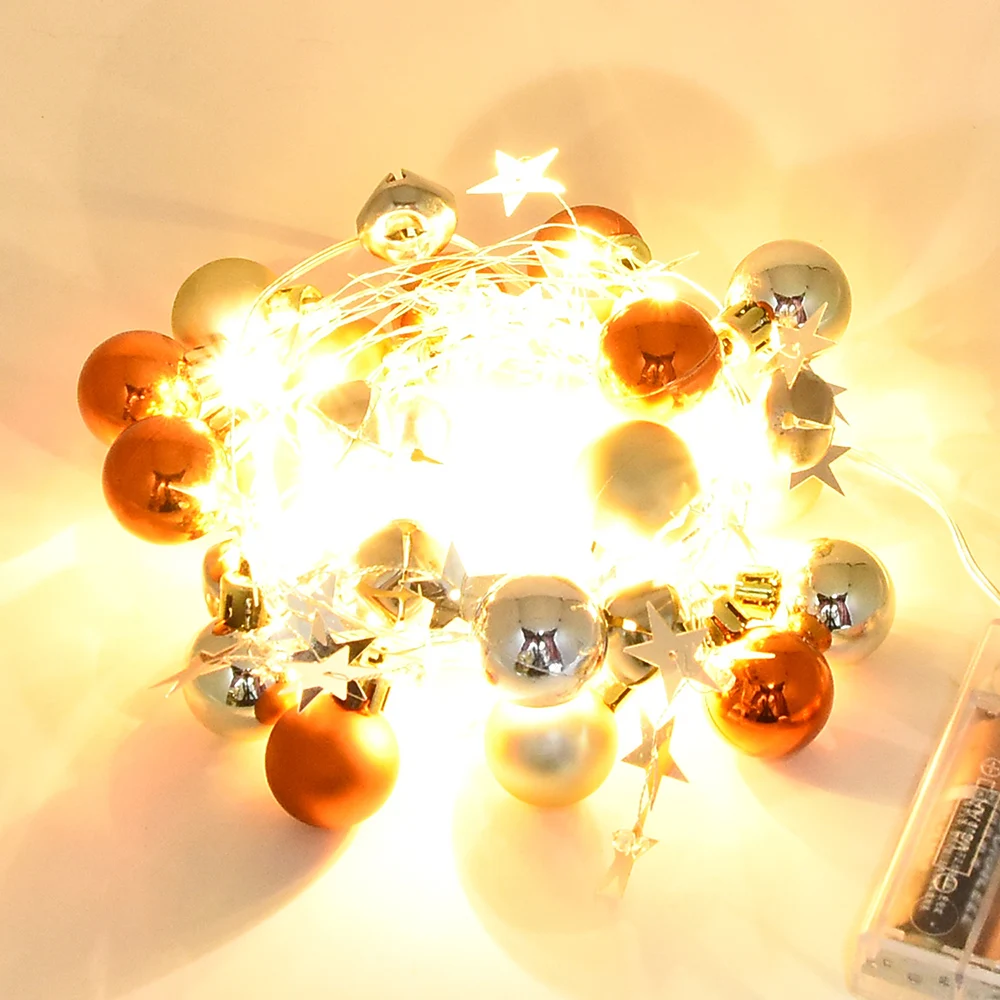 Светодиодная лента 2 м с 20 светодиодами в виде еловых веток с шишками, красными бусинами и звездами, декоративная гирлянда для украшения дома, праздника, свадьбы