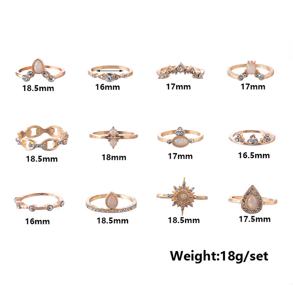 Женское кольцо с кристаллом в богемном стиле, набор геометрических колец золотистого цвета с кристаллом в форме лепестка сердца, ювелирное изделие