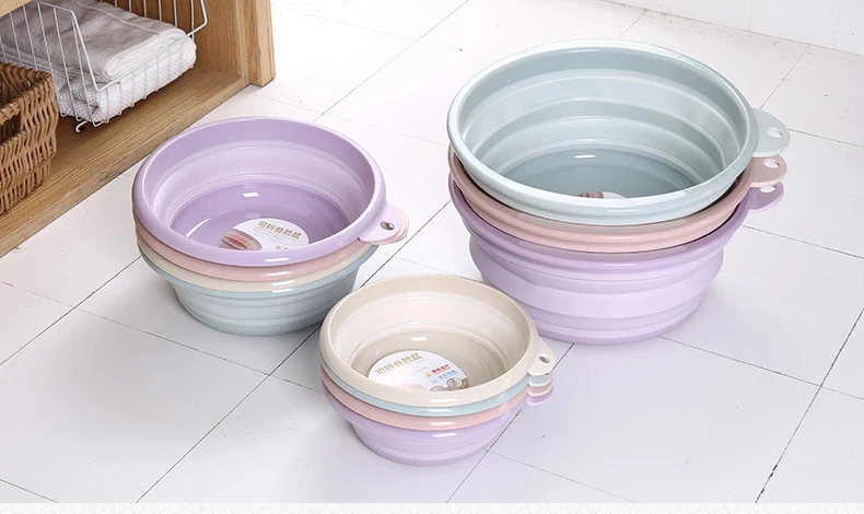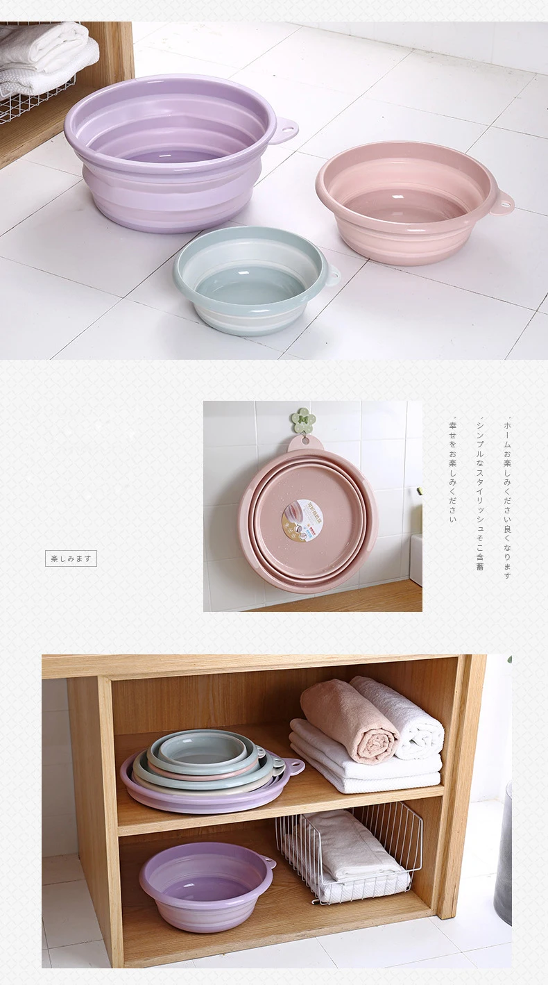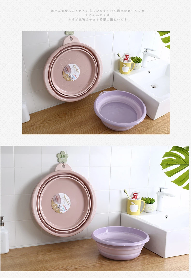 Складной умывальник, изготовленный из ПП + ТПР + АБС-пластика, с достаточным материалом, толстый и водонепроницаемый, не деформируется и не выцветает, сильный анти-падение, не легко повредить, большой, средний и маленький по желанию, используется для мытья овощей, мытья лица, стирки, купания и т. д. Подходит для дома, прогулок и переноски, Складное хранение, с висячими отверстиями, можно повесить и хранить, экономя пространство