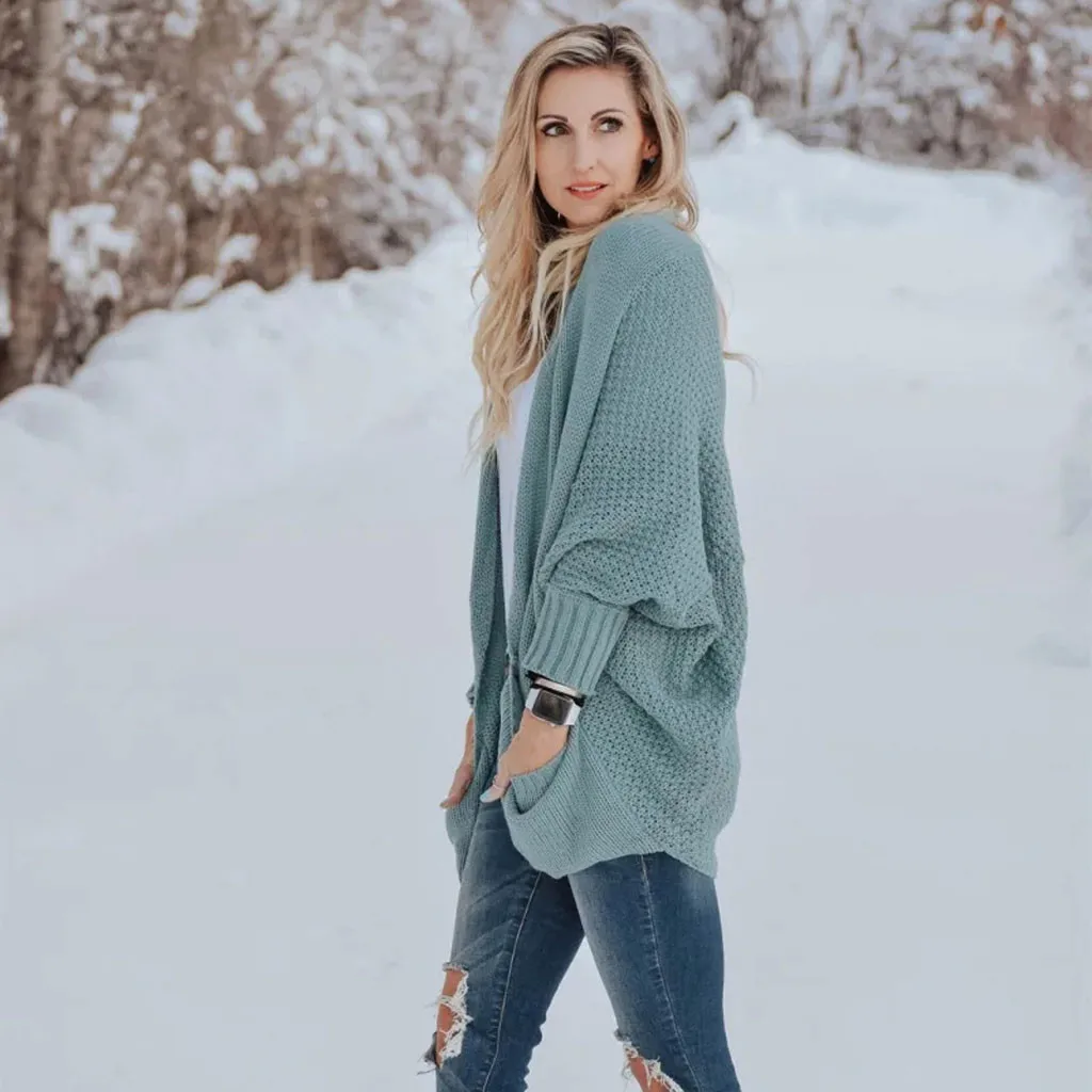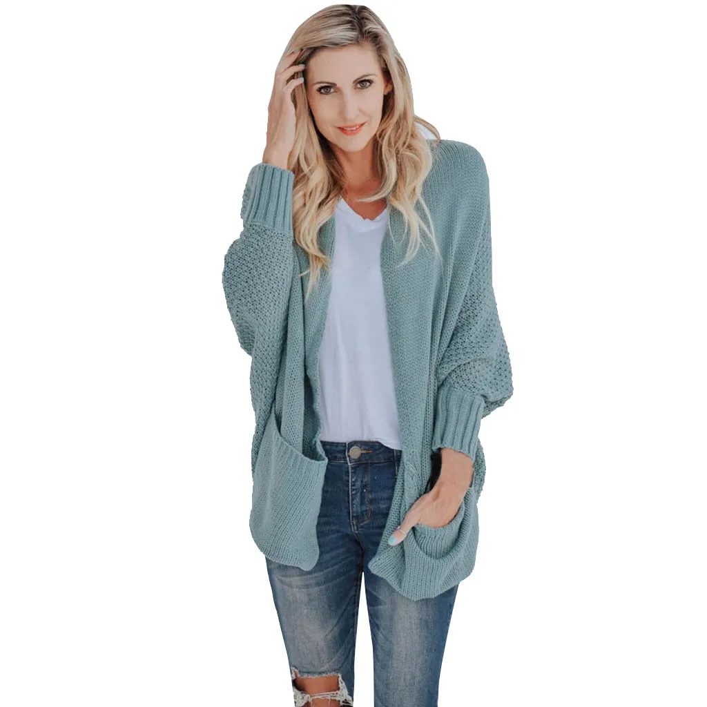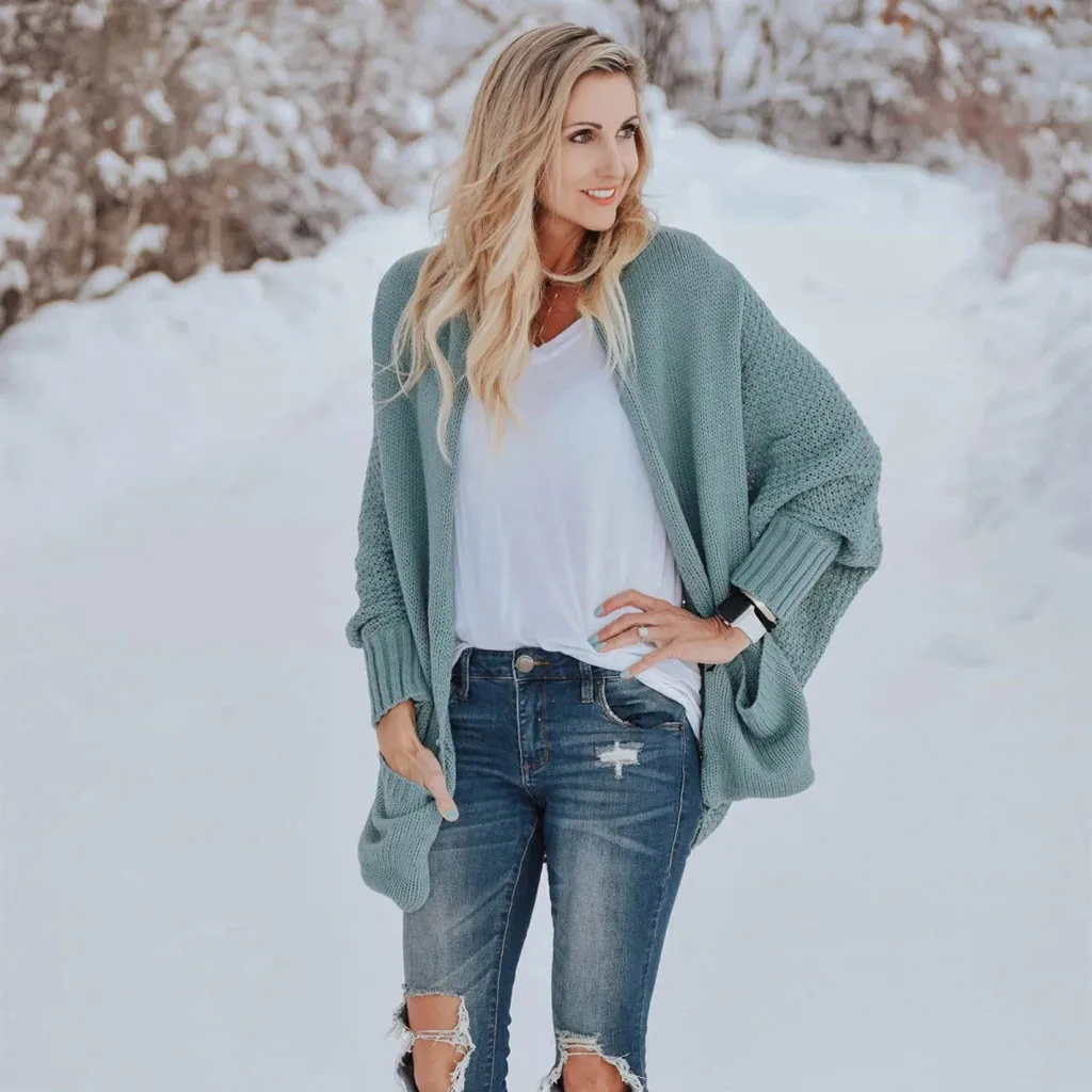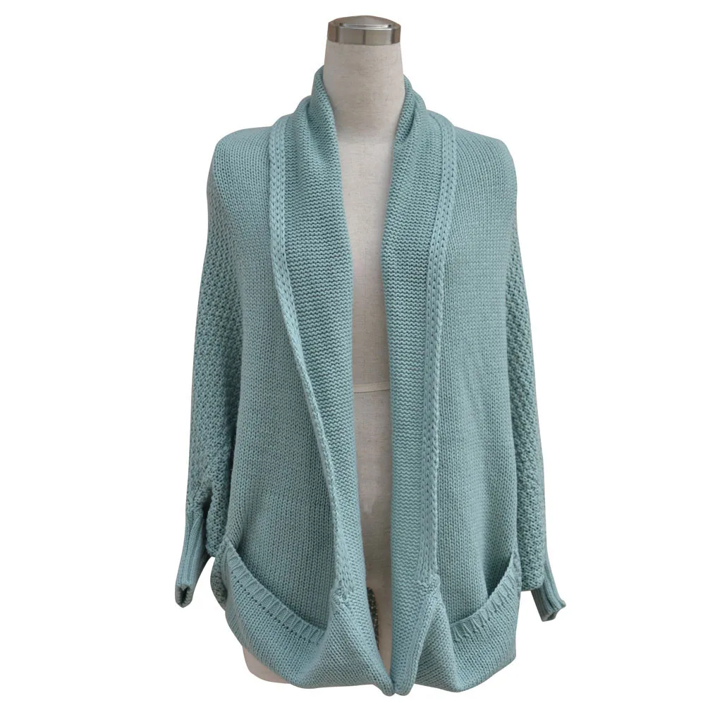 Женский Теплый рукав «летучая мышь» большой размер длинный вязаный кардиган свитер открытый стежок свитер