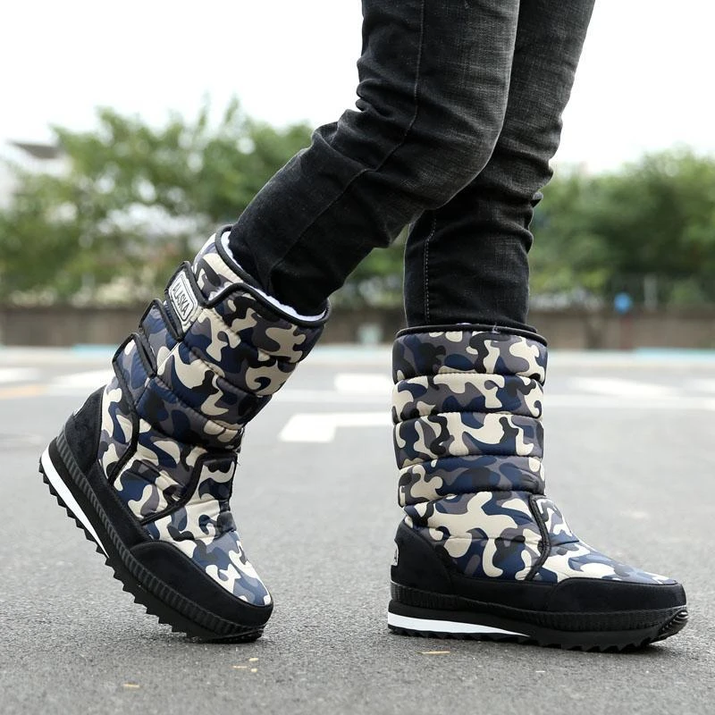 2019 новые зимние мужские ботинки камуфляжной расцветки рабочая обувь из хлопка водонепроницаемые повседневные мужские ботинки до середины икры с мехом и плюшем Размер 47