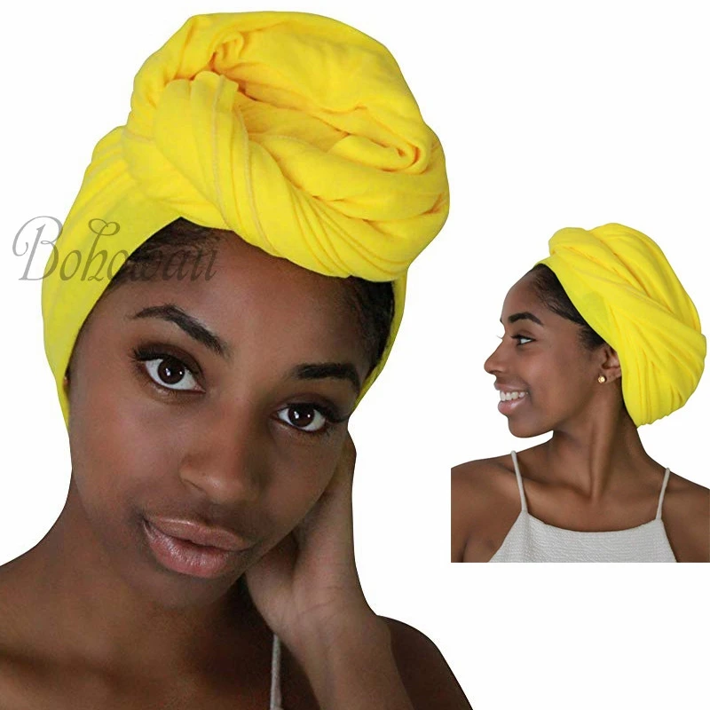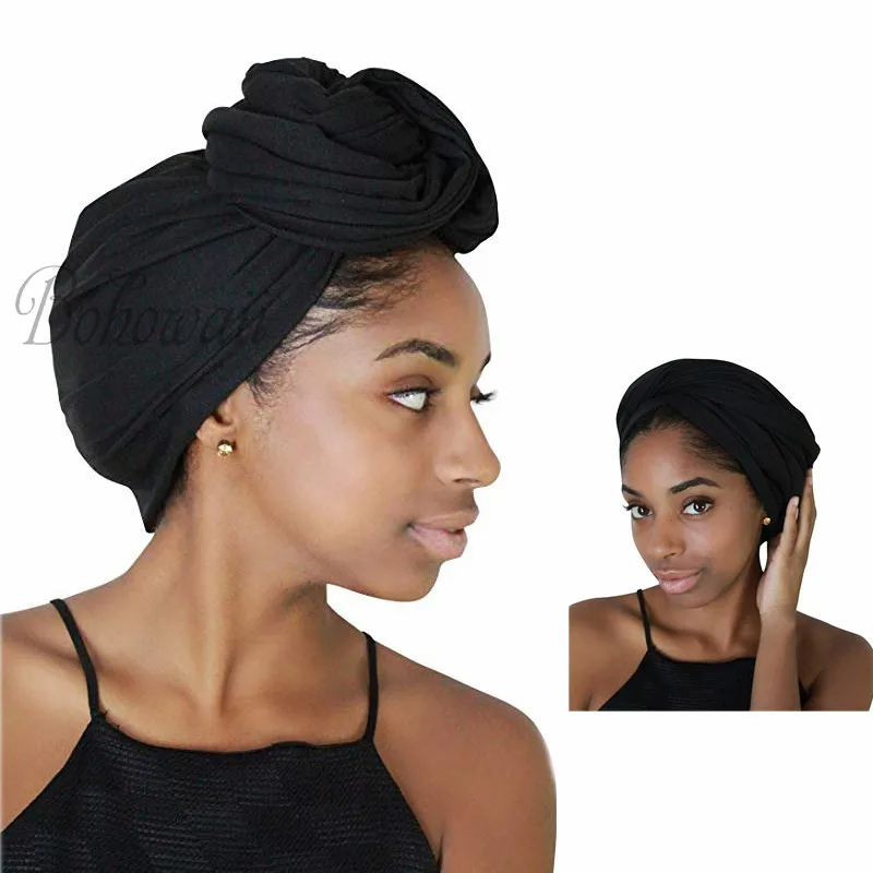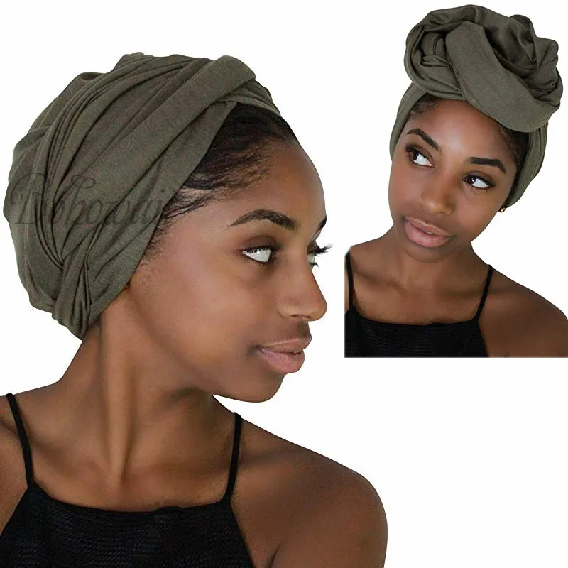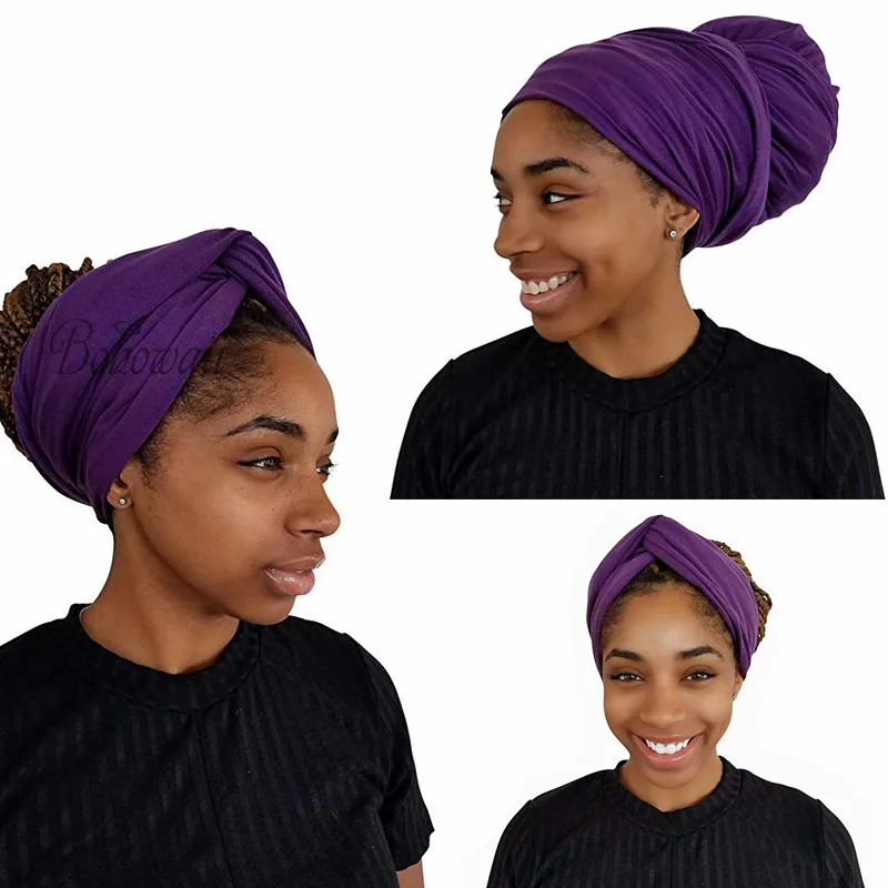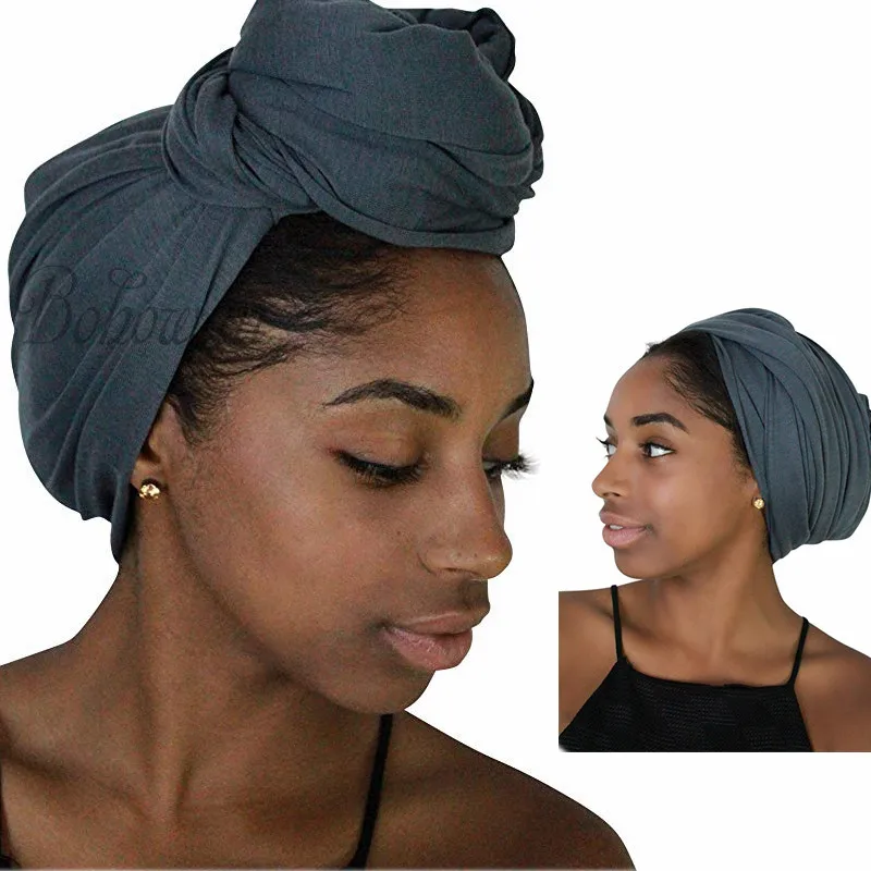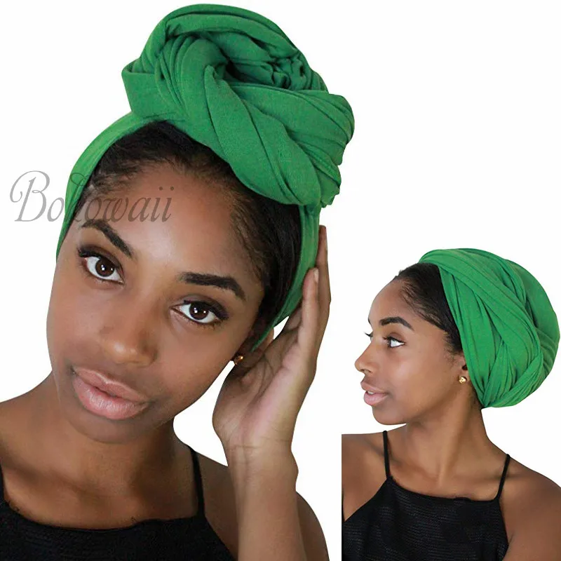 Повседневный тюрбан BOHOWAII, однотонный растягивающийся длинный платок для волос, хиджаб, шарфы 180x80 см