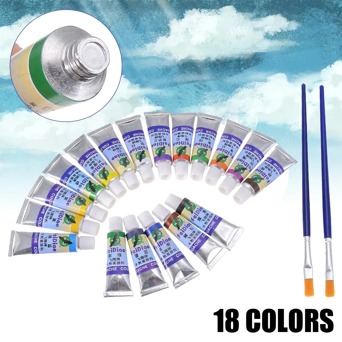 18 цветов, 5 мл, набор пигментов для рисования акварелью, профессиональная краска для гуаши, сделай сам, принадлежности для рисования художника с 2 кистями