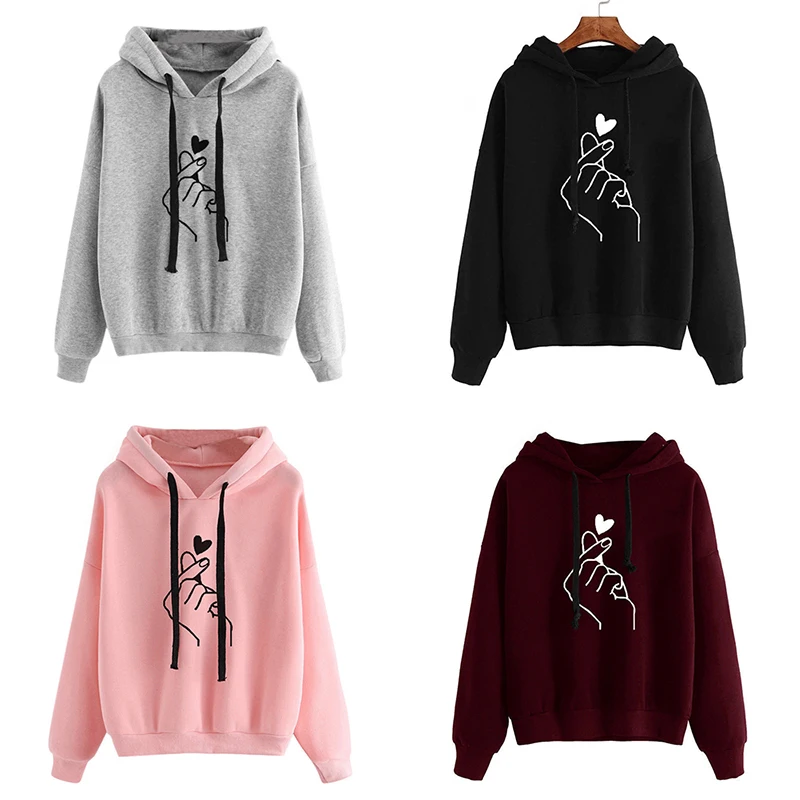 Женская толстовка и толстовка с капюшоном, Женская Повседневная Толстовка с капюшоном и сердечком для девочек