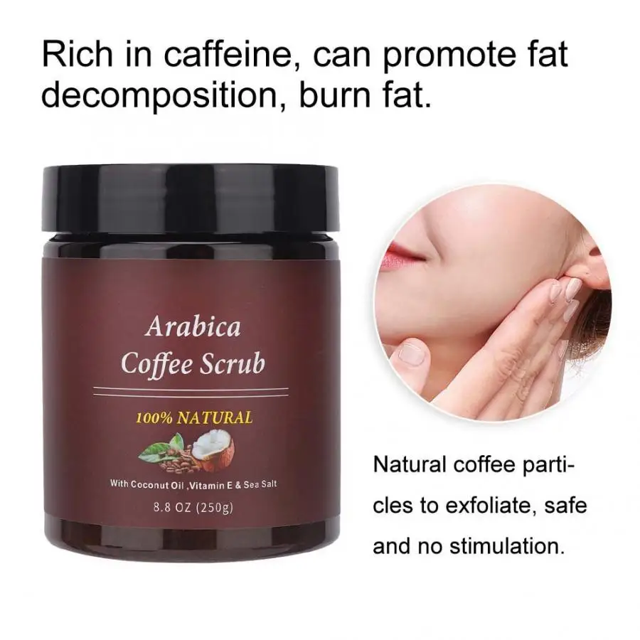 Крем-скраб для тела богато кофеином, может способствовать разложению жира, сжиганию жира. Крем может ускорить циркуляцию крови в сочетании с массажем, сделать кожу более плотной.
