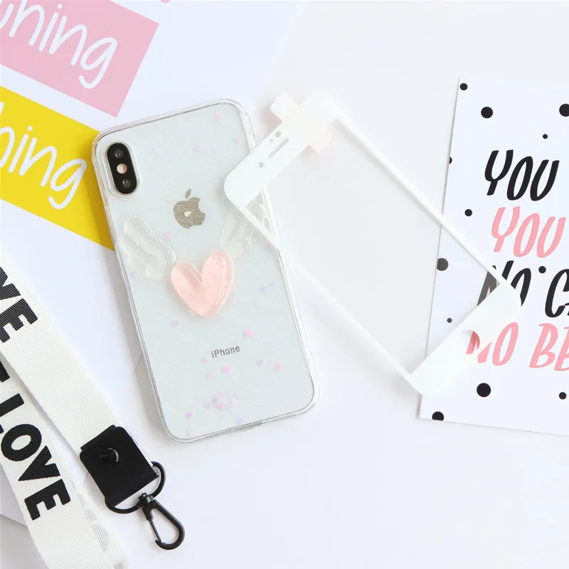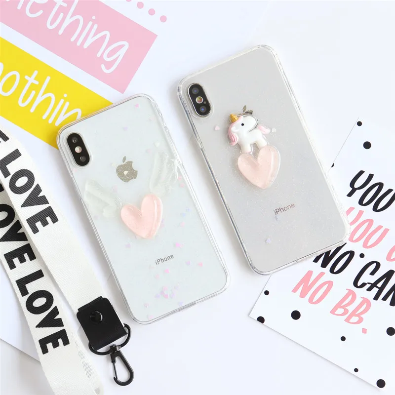 Для iPhone XS MAX/XR 8 7 6s plus Прозрачный чехол для задней панели и Передняя пленка из закаленного стекла для iPhone 8 plus 7 plus XS 3D единорог + ремешок