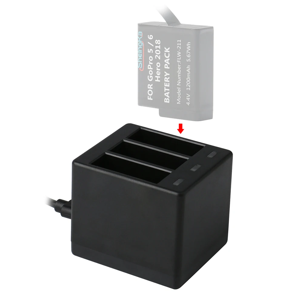 3-канальный зарядное устройство эффективен и надежен для зарядки аккумуляторов, которые используются для GoPro Hero 5/GoPro Hero 6 /Hero 2018 и Hero 7 черный, можно заряжать одну батарею одновременно или заряжать 3 батареи одновременно.