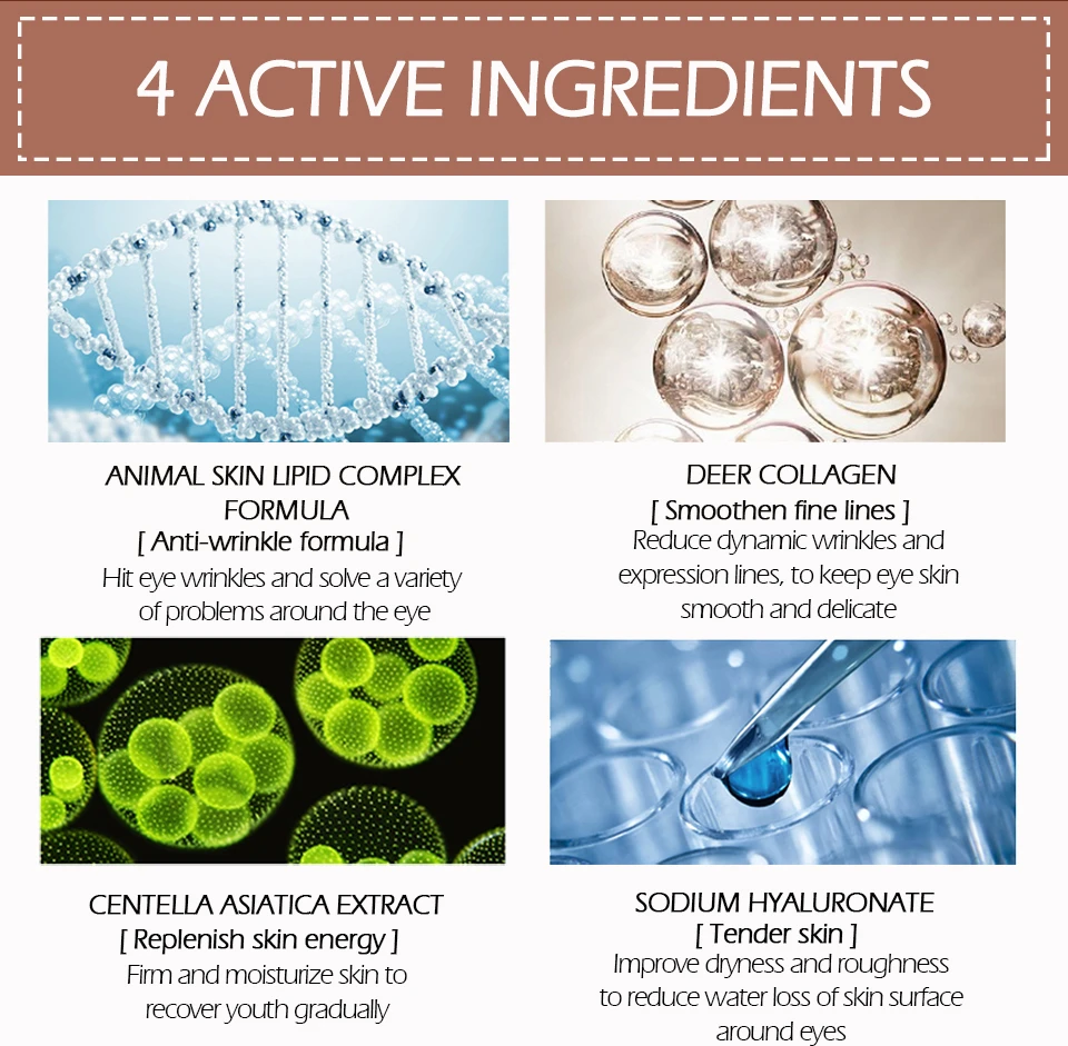 Богаты различными растительными экстрактами, чтобы дополнять увлажненные и питательные вещества, необходимые коже. Успокаивает и питает, чтобы улучшить кожу, снимает проблемы с кожей вокруг глаз мягко на коже, не вызывая раздражения. уменьшает морщины и пышные глаза под глазами, придает глазам мягкость и прозрачность, делает кожу нежной и упругой