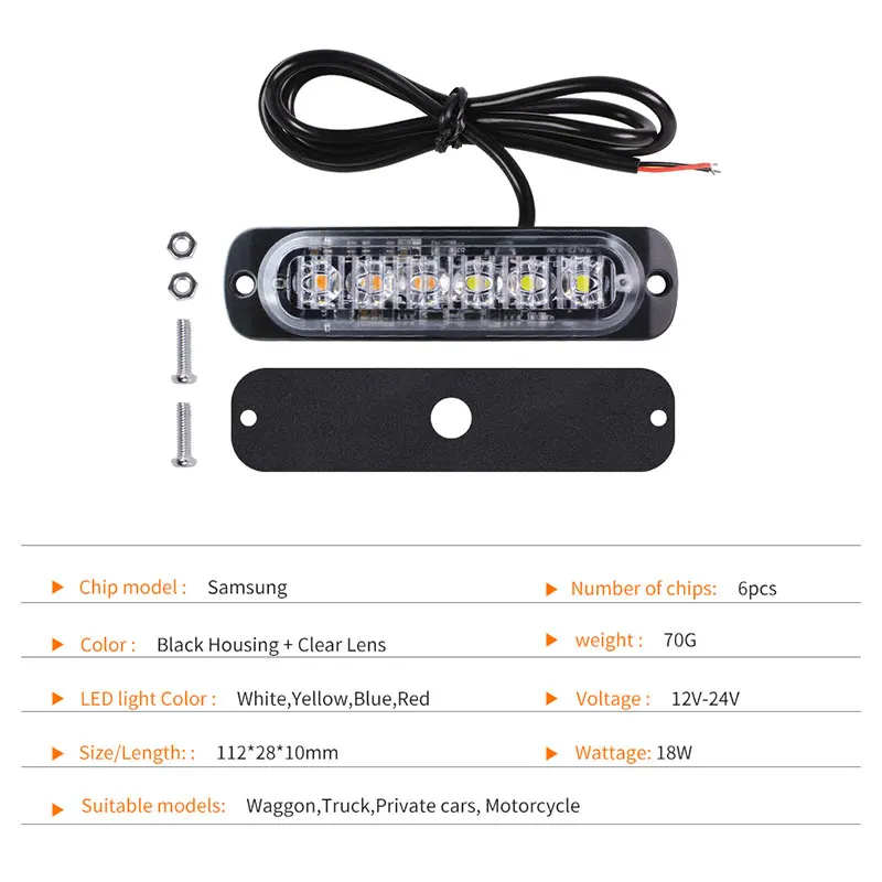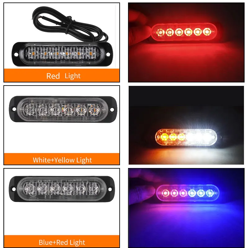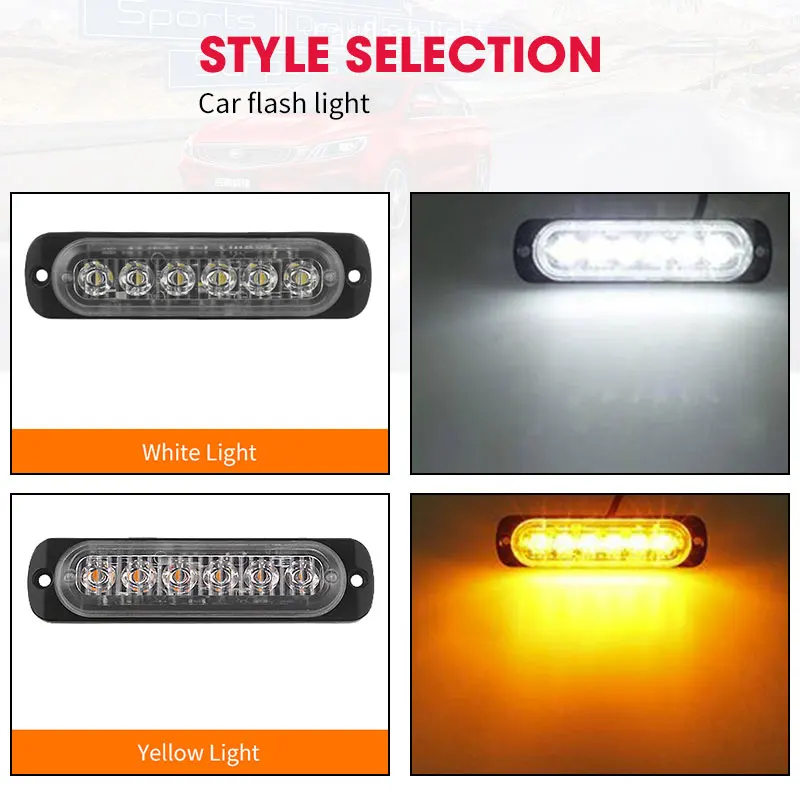 6 светодиодный сигнальный светильник для автомобиля, аварийный маяк, Предупреждение ющий об опасности, желтый красный стробоскоп, светильник, белый дневной ходовой светильник