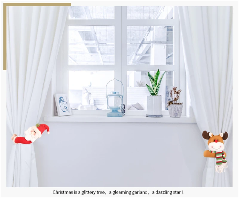 Новогоднее Рождественское украшение, маленькая креативная шторка с пряжкой, мультяшный Санта-Клаус, снеговик, занавеска С лосями, украшение BZ008