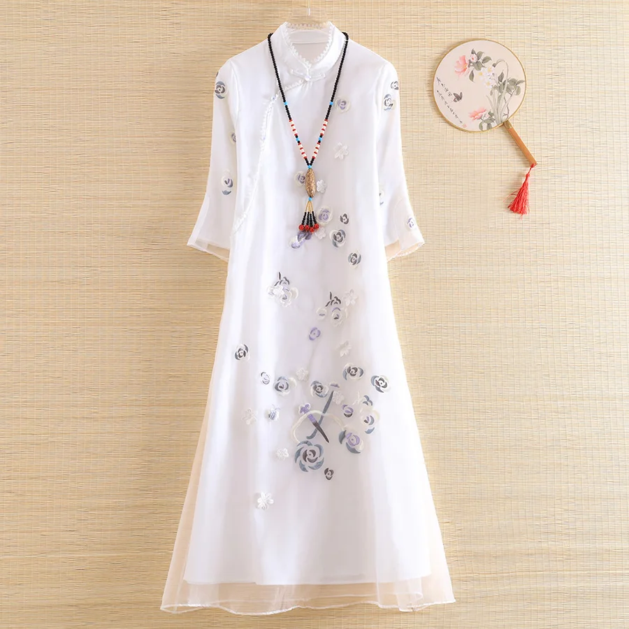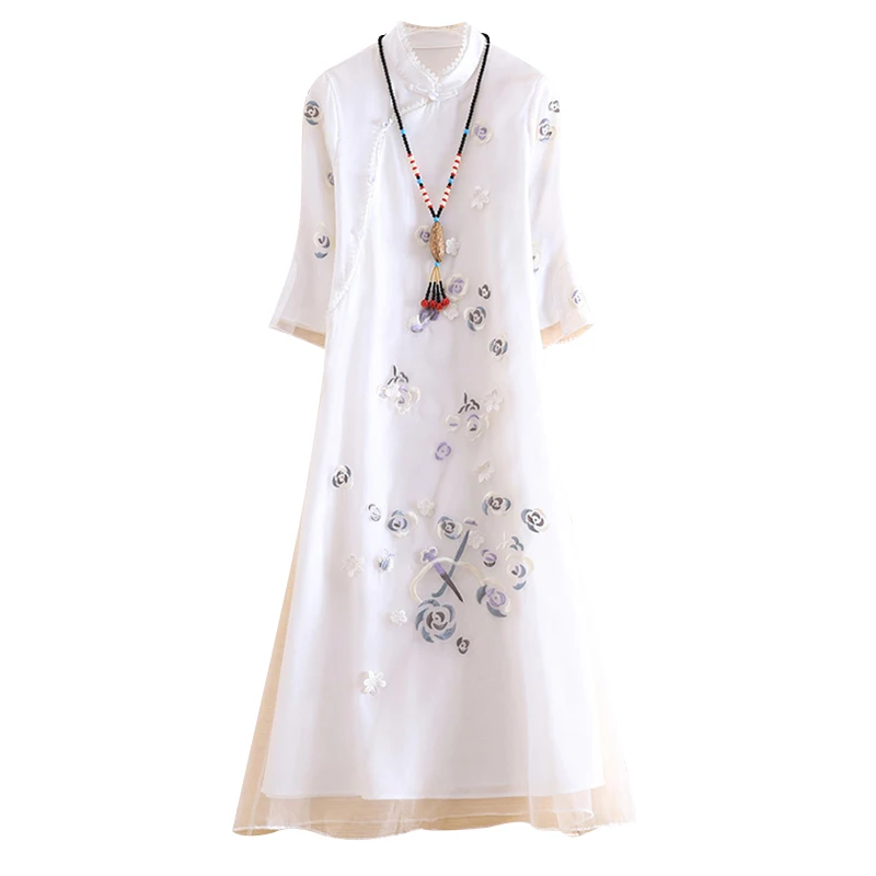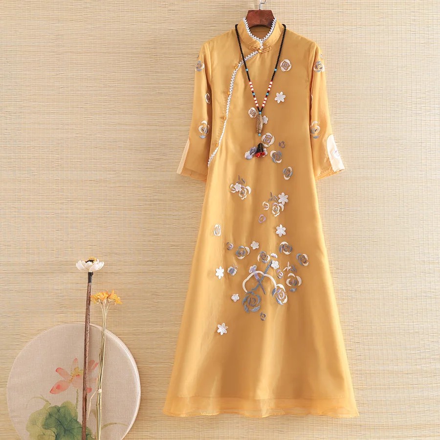 Embro Mill, новое осеннее шифоновое женское платье в этническом стиле, ретро, элегантное, с вышивкой, рукав 3/4, свободное, ТРАПЕЦИЕВИДНОЕ, женское вечернее платье, S-XXL
