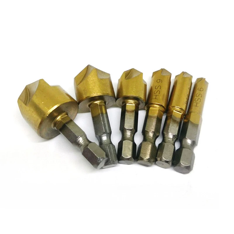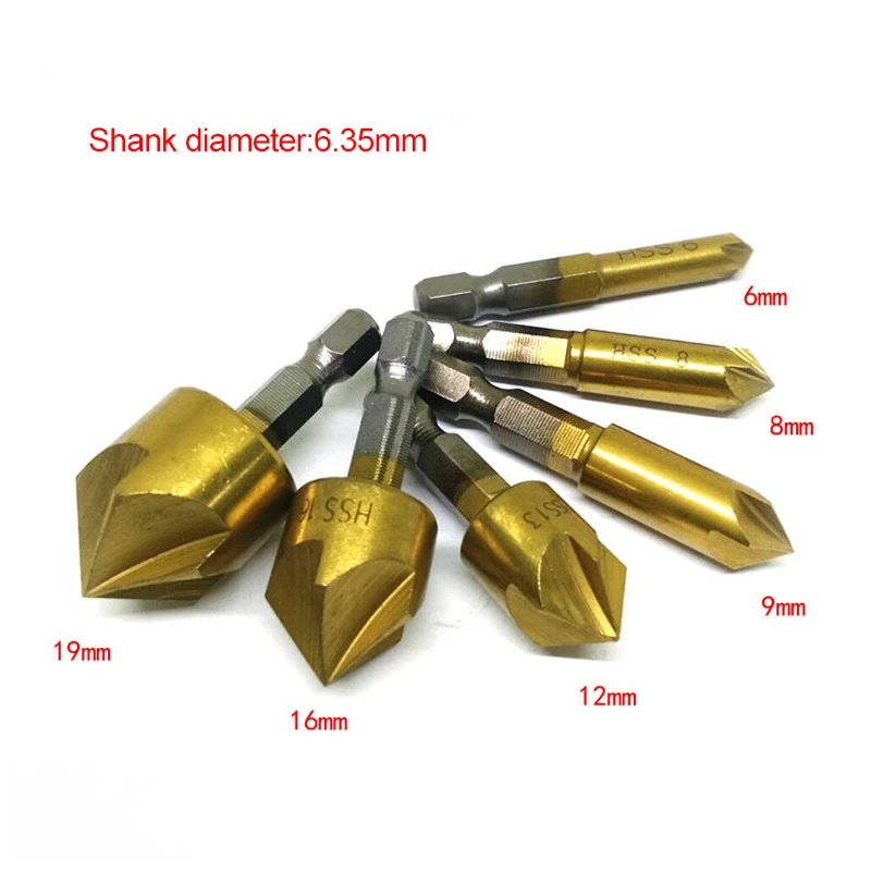 6 шт. 1/4 дюйма хвостовик 5 Флейта фаски зенковки сверло из высокоуглеродистой стали 6 8 9 12 16 19 мм 90 градусов дерево фаски Резак