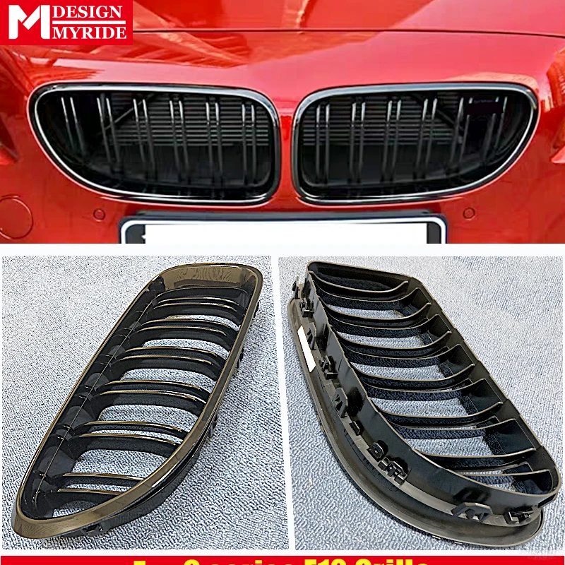 1 Pair F12 Front Grille ABS Gloss Black For F12 M6 2-Slats Grills 640i 640d 640ixD 650i 650d 650ixD Front Kidney Grille 2012-17