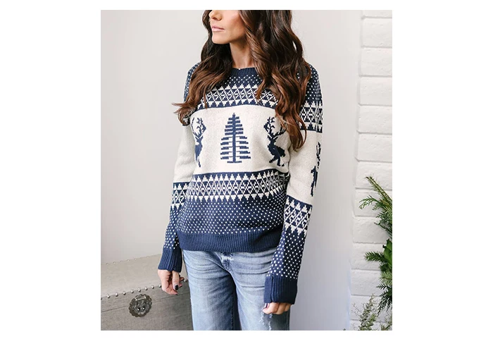 Женский пуловер свободного покроя с длинным рукавом и цветочным принтом - купить
