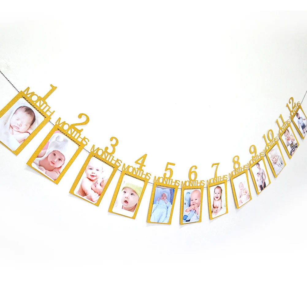 12 месяцы фоторамка баннер первый декорации с днем рождения настенный 1st для маленьких мальчиков и девочек мой 1 Год Вечерние поставки
