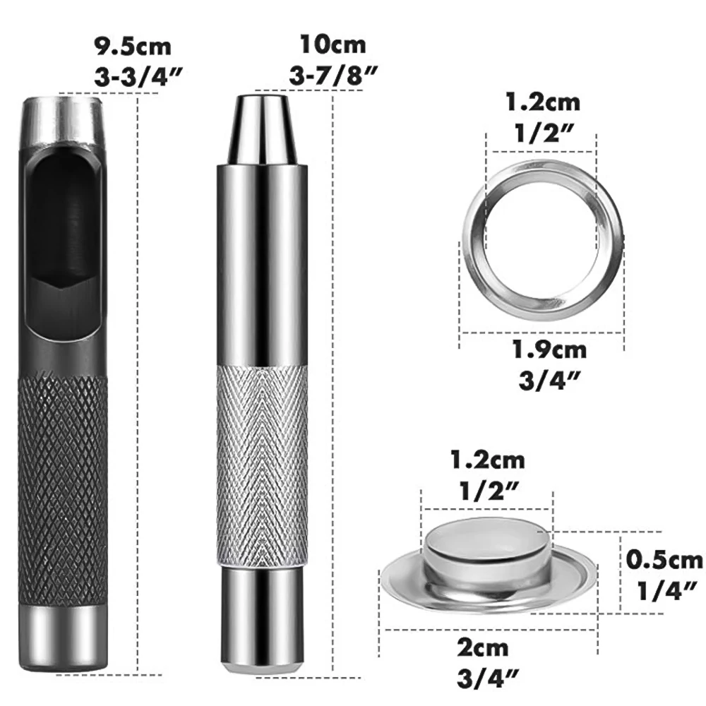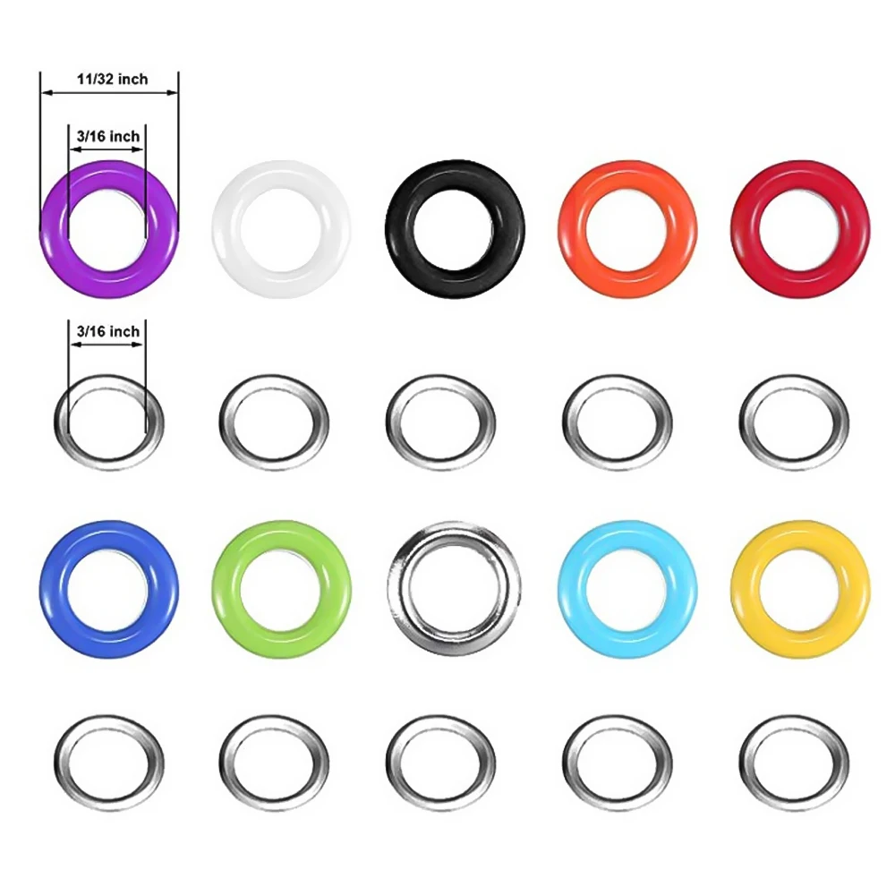 Размеры: люверс для внутренний диаметр 3/16 дюймов, наружный диаметр 11/32 дюйма, круг, внутренний диаметр 3/16 дюймов