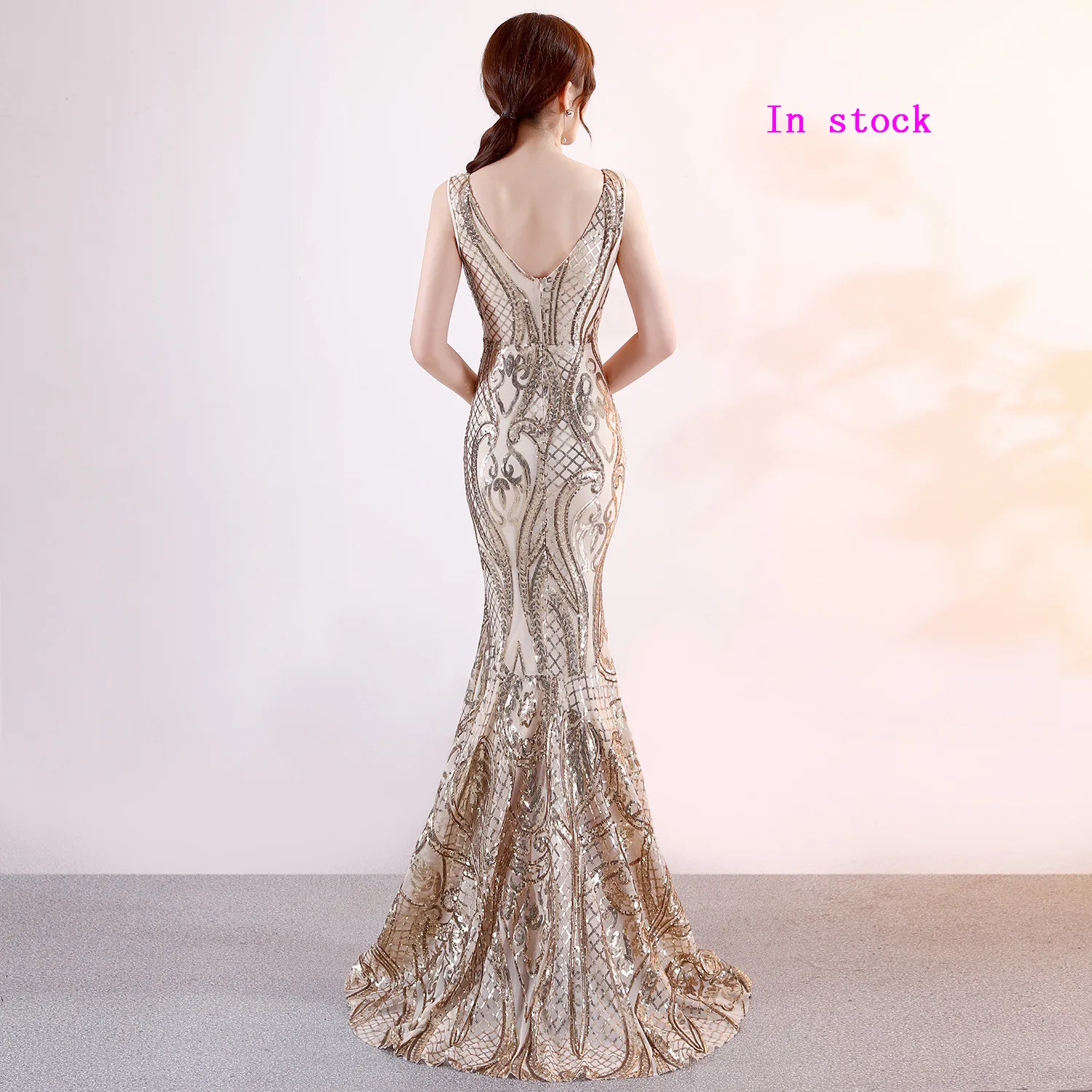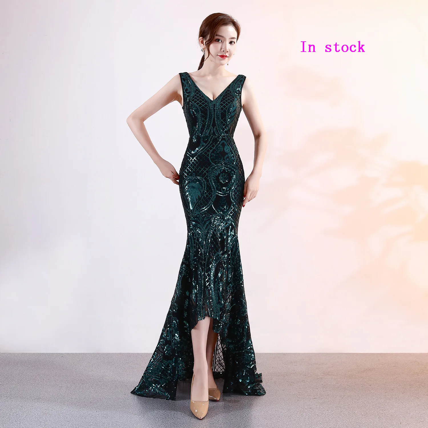 Женское винтажное платье-Русалка черное блестящее платье с длинным рукавом
