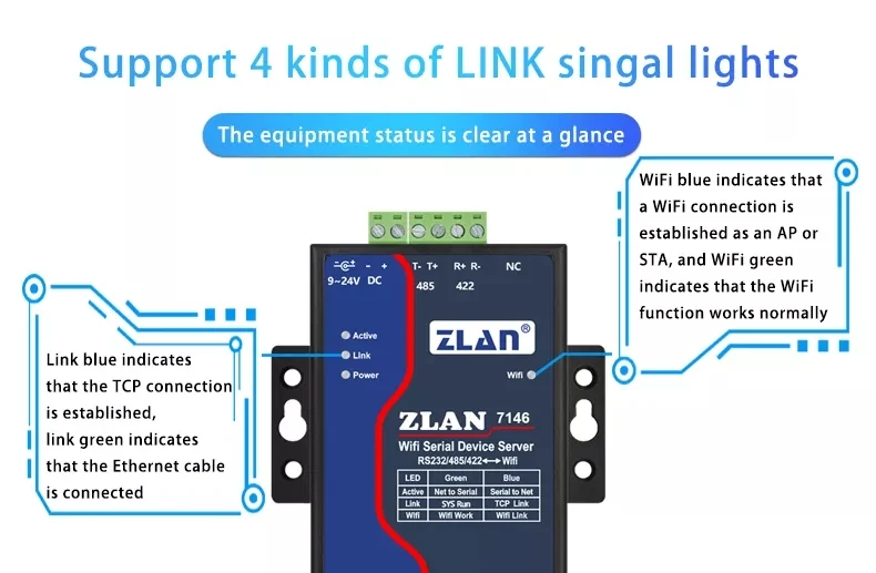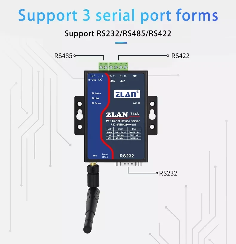 ZLAN7146 высокопроизводительный Wifi Серийный Сервер устройства