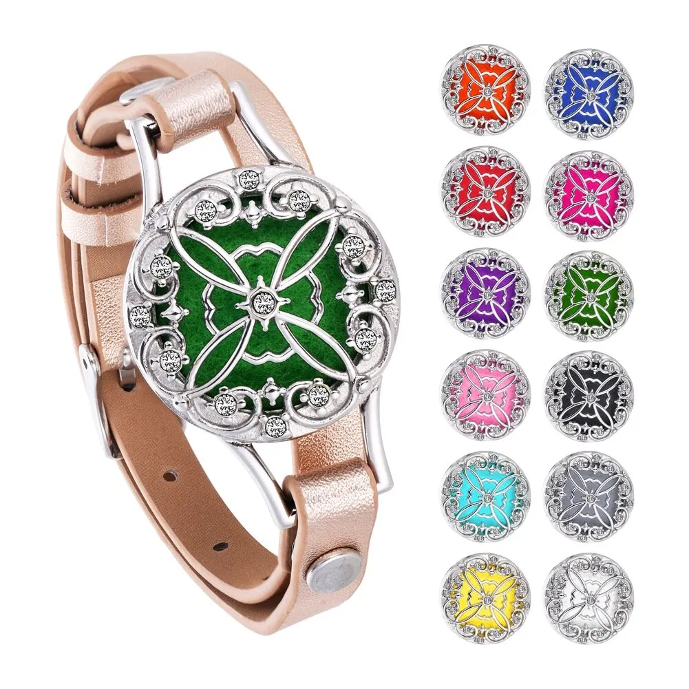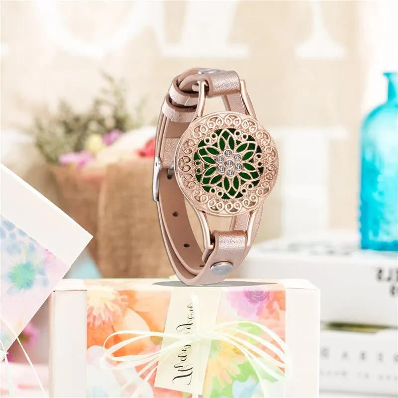 Белый K Нержавеющая сталь бриллиантовый трехмерный цветочный узор открывающийся Ароматический диффузор кожаный ремешок браслет