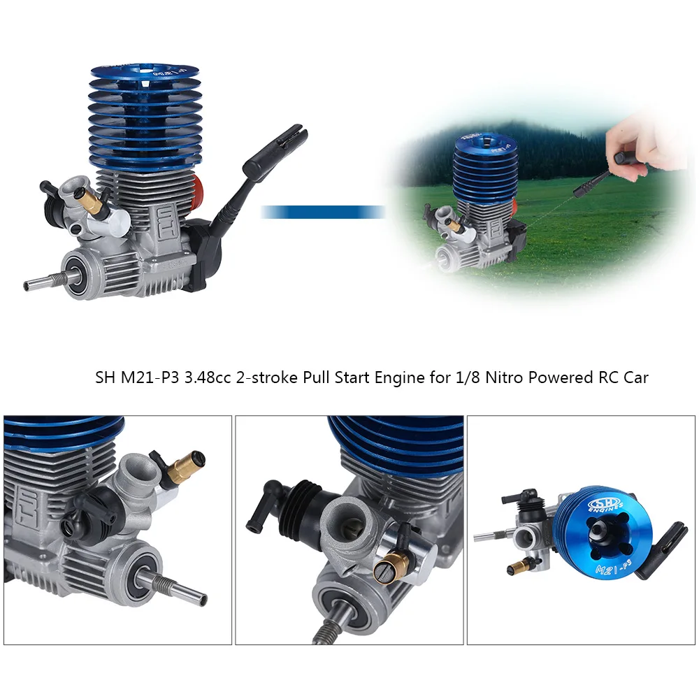 Двигатель SH 21 pull start изготовлен из высококачественных материалов и предназначен для долговечности. И разработан для превосходного крутящего момента и долговечности, что позволяет раскрыть весь потенциал вашего 1/8 nitro monster truck.